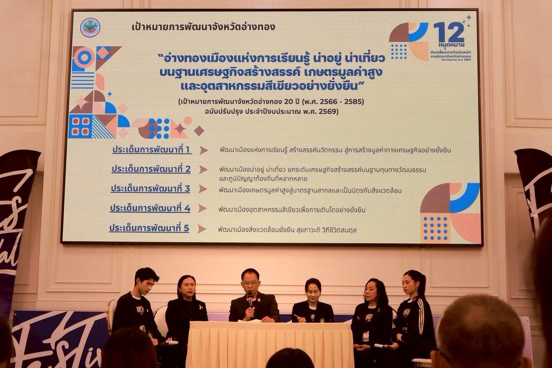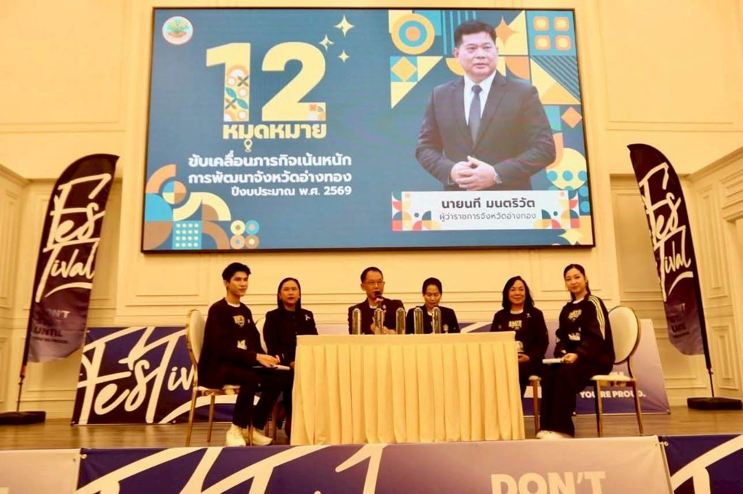 นางสาวพรพรหม ญาณสมบัติ จัดหางานจังหวัดอ่างทอง เข้าร่วมงานแถลงข่าวกิจกรรม Ang Thong Sports Tourism Festival 2025 เพื่อส่งเสริมการท่องเที่ยวเชิงเกษตร ประวัติศาสตร์ วัฒนธรรม วิถีชุมชน และการท่องเที่ยวเชิงสร้างสรรค์ โดยมี นายทัศนัย สุธาพจน์ รองผู้ว่าราชการจังหวัดอ่างทอง เป็นประธาน ณ ห้องประชุมทอฝัน โรงแรมสุพร แกรนด์ โฮเต็ล อำเภอเมืองอ่างทอง จังหวัดอ่างทอง
