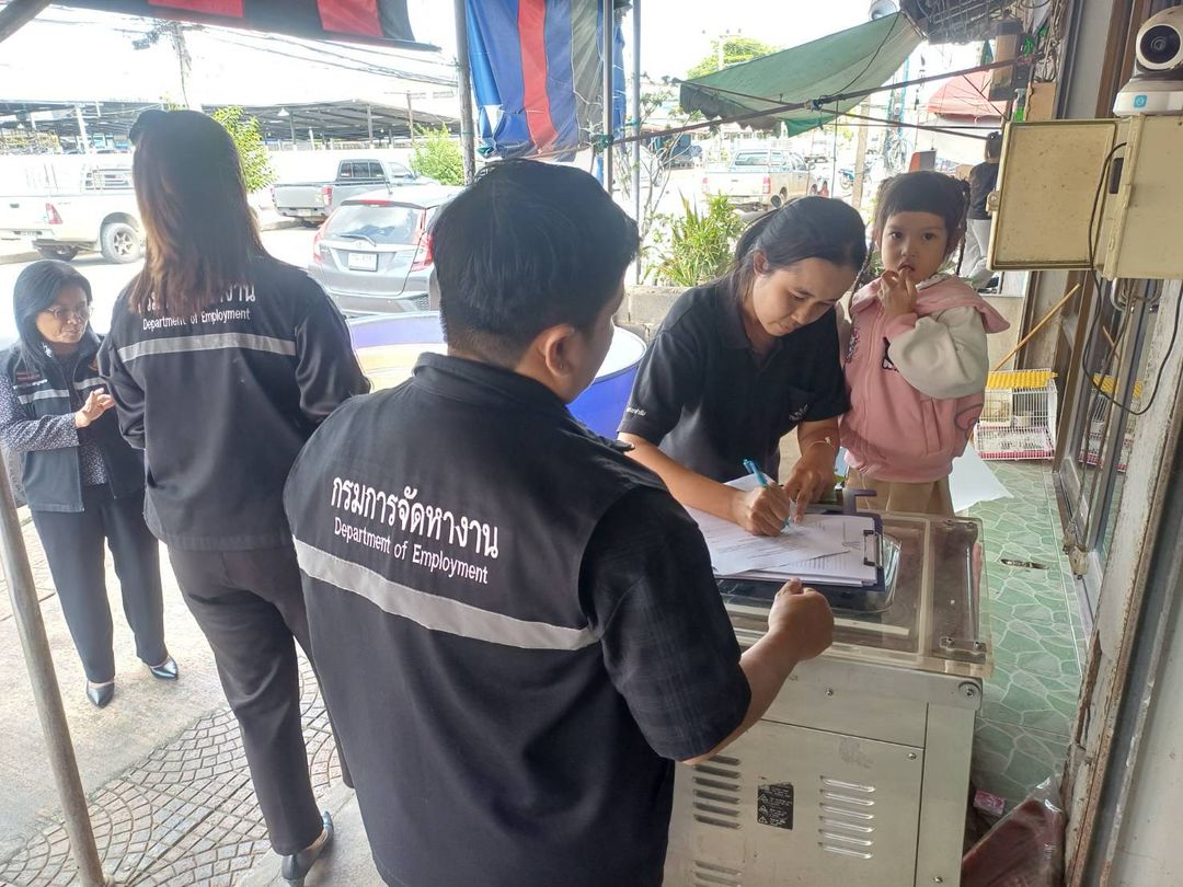นางสาวพรพรหม ญาณสมบัติ จัดหางานจังหวัดอ่างทอง มอบหมายให้เจ้าหน้าที่งานควบคุมการทำงานของคนต่างด้าว ตรวจสอบการทำงานของ