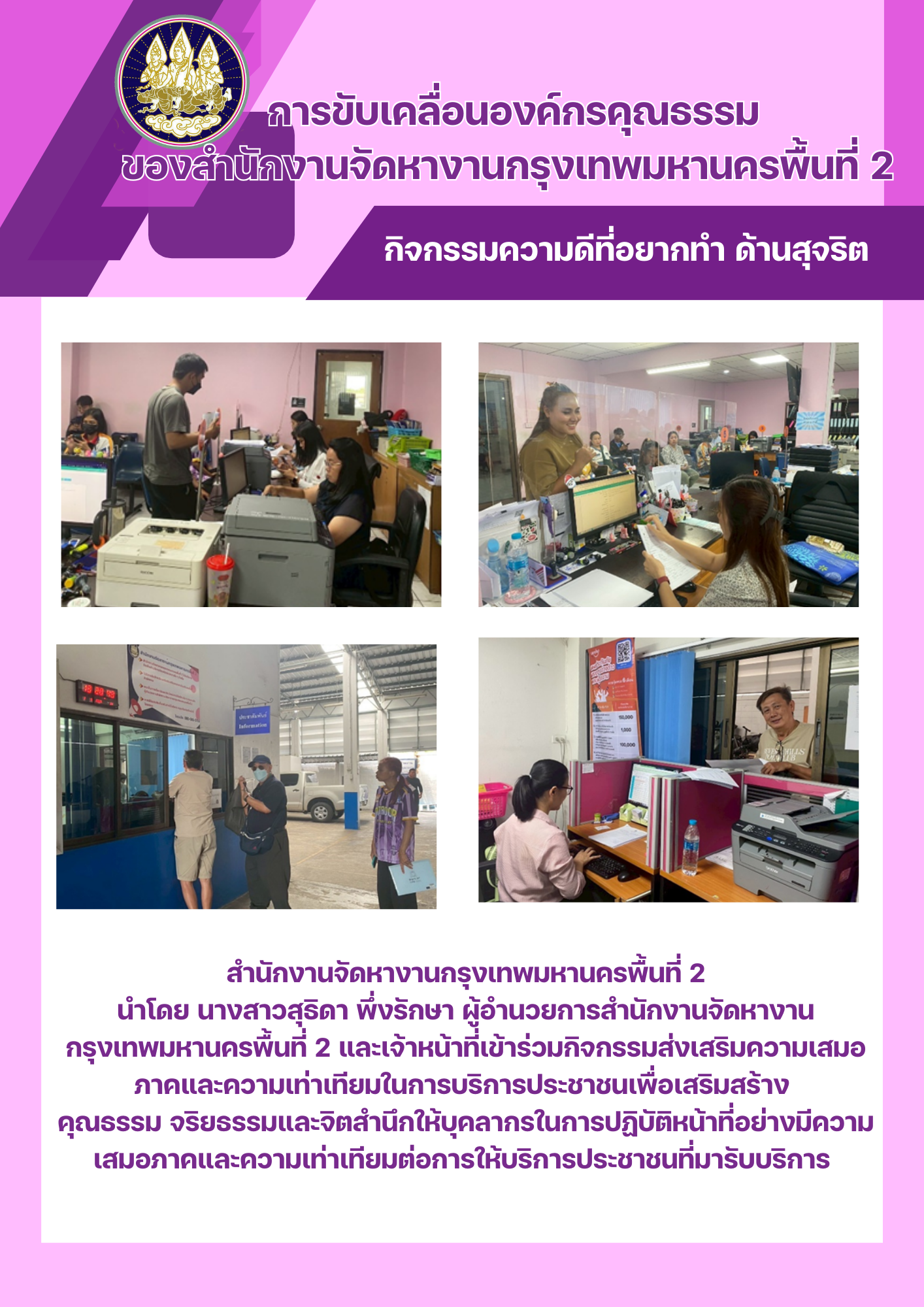 การขับเคลื่อนองค์กรคุณธรรม ของสำนักงานจัดหางานกรุงเทพมหานครพื้นที่ 2 กิจกรรมความดีที่อยากทำ ด้านสุจริต