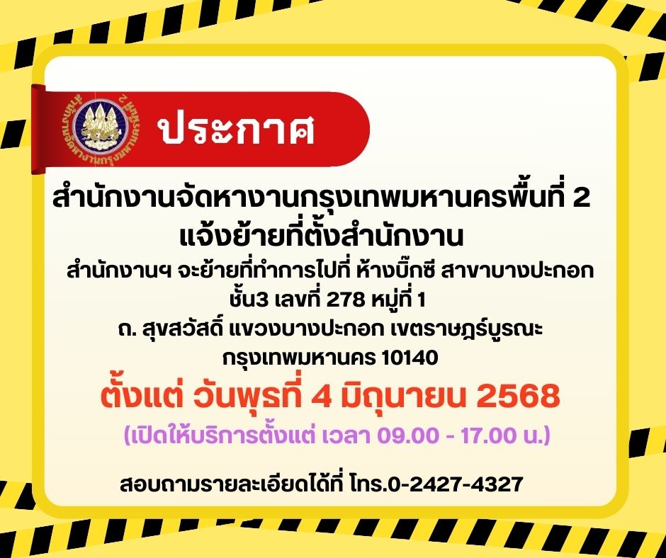 สำนักงานจัดหางานกรุงเทพมหานครพื้นที่ 2 ย้าที่ทำการ