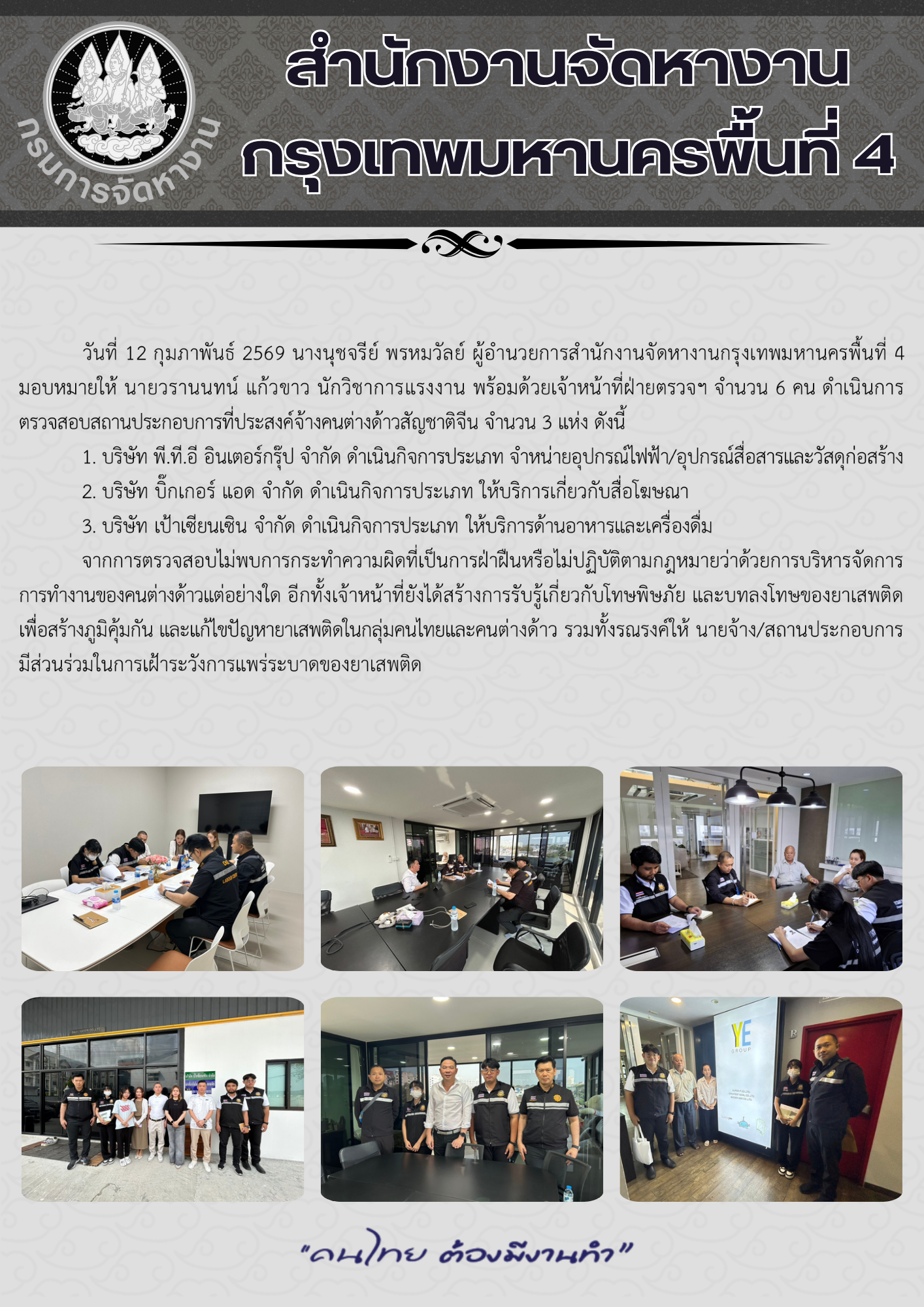 ดำเนินการตรวจสอบสถานประกอบการที่ประสงค์จ้างคนต่างด้าวสัญชาติจีน