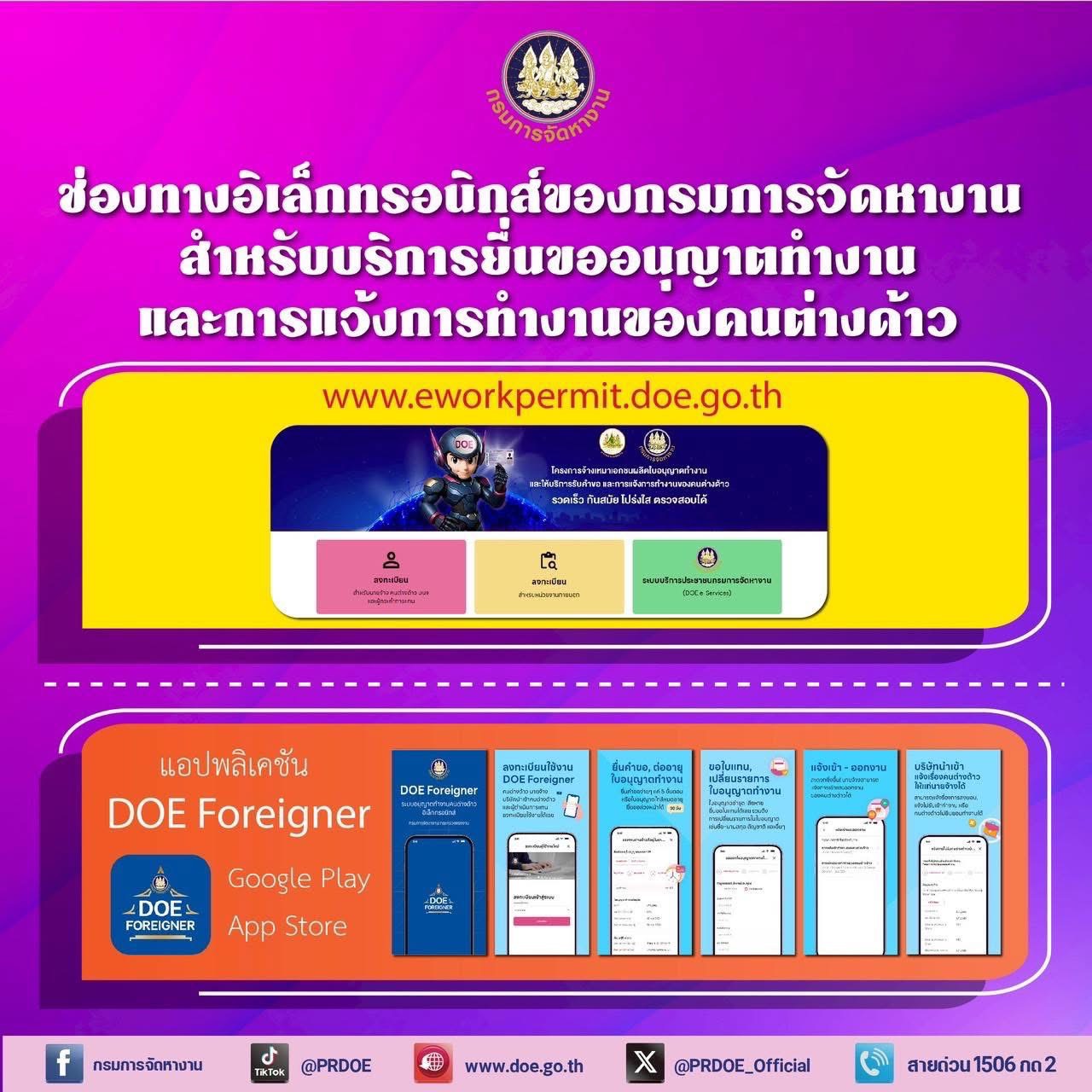 ช่องทางอิเล็กทรอนิกส์ของกรมการจัดหางานสำหรับบริการยื่นขออนุญาตทำงานและการแจ้งการทำงานของคนต่างด้าว
