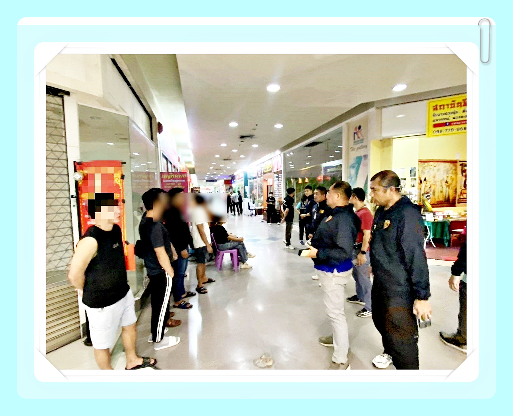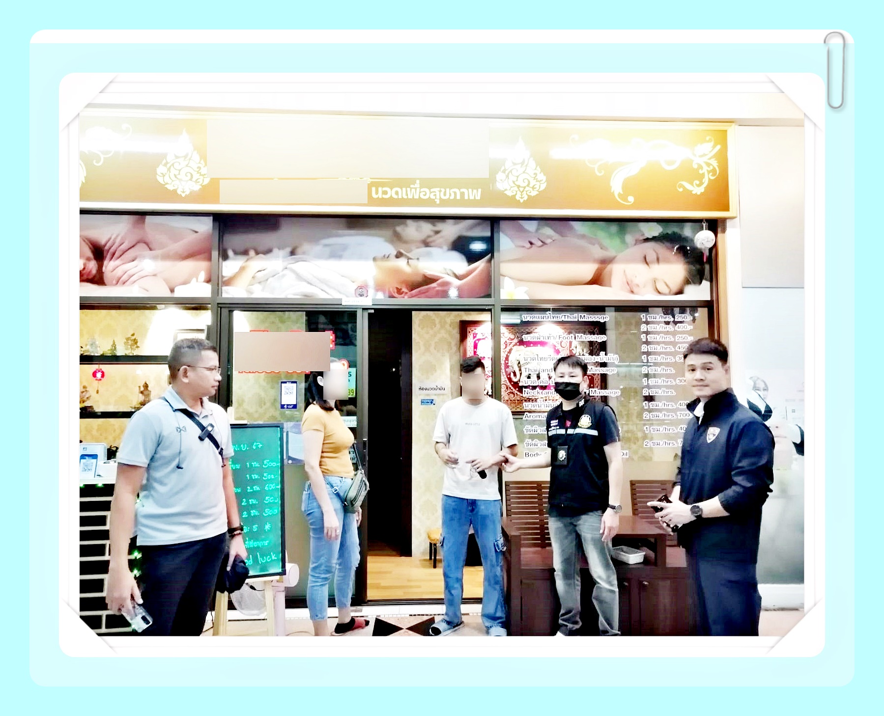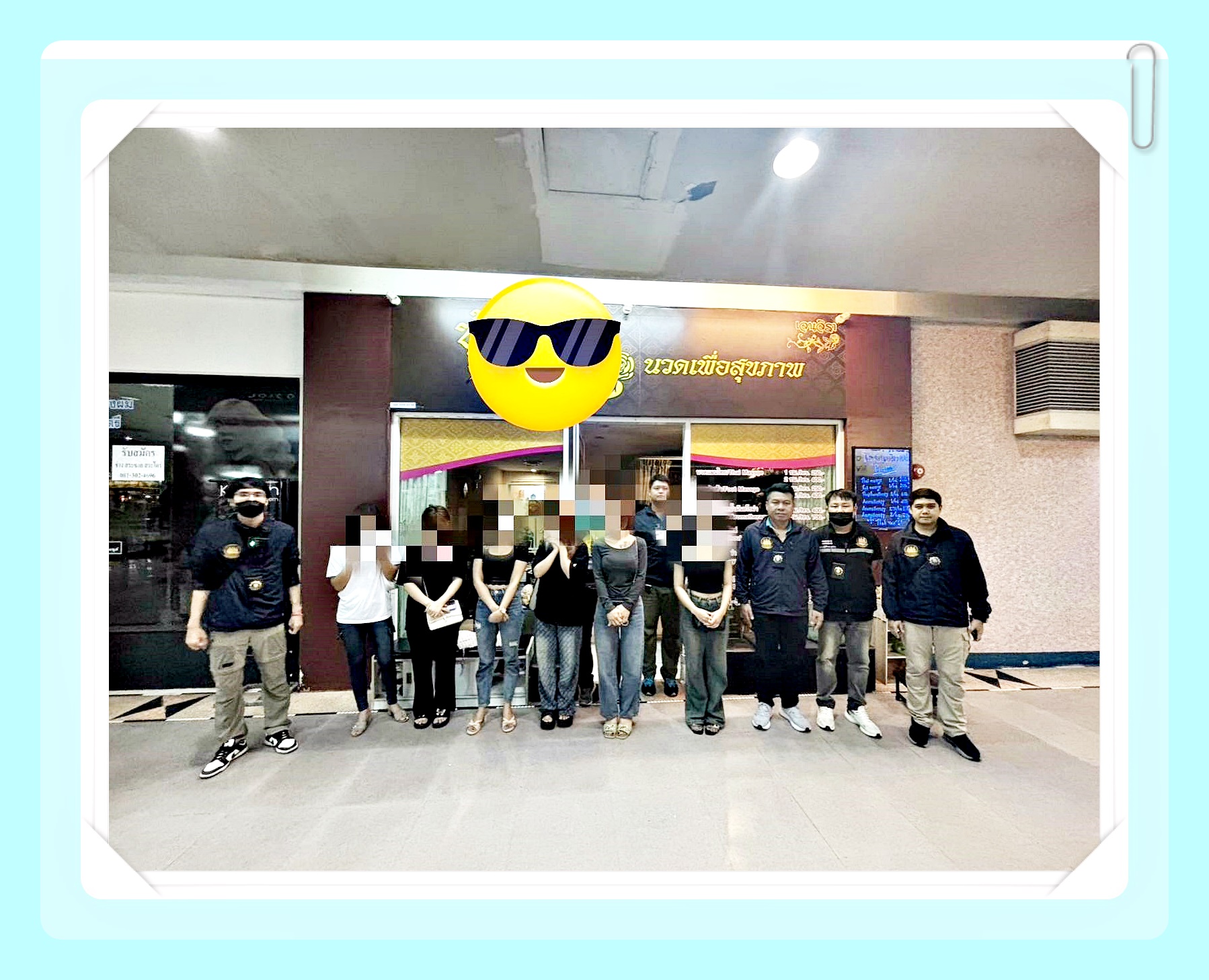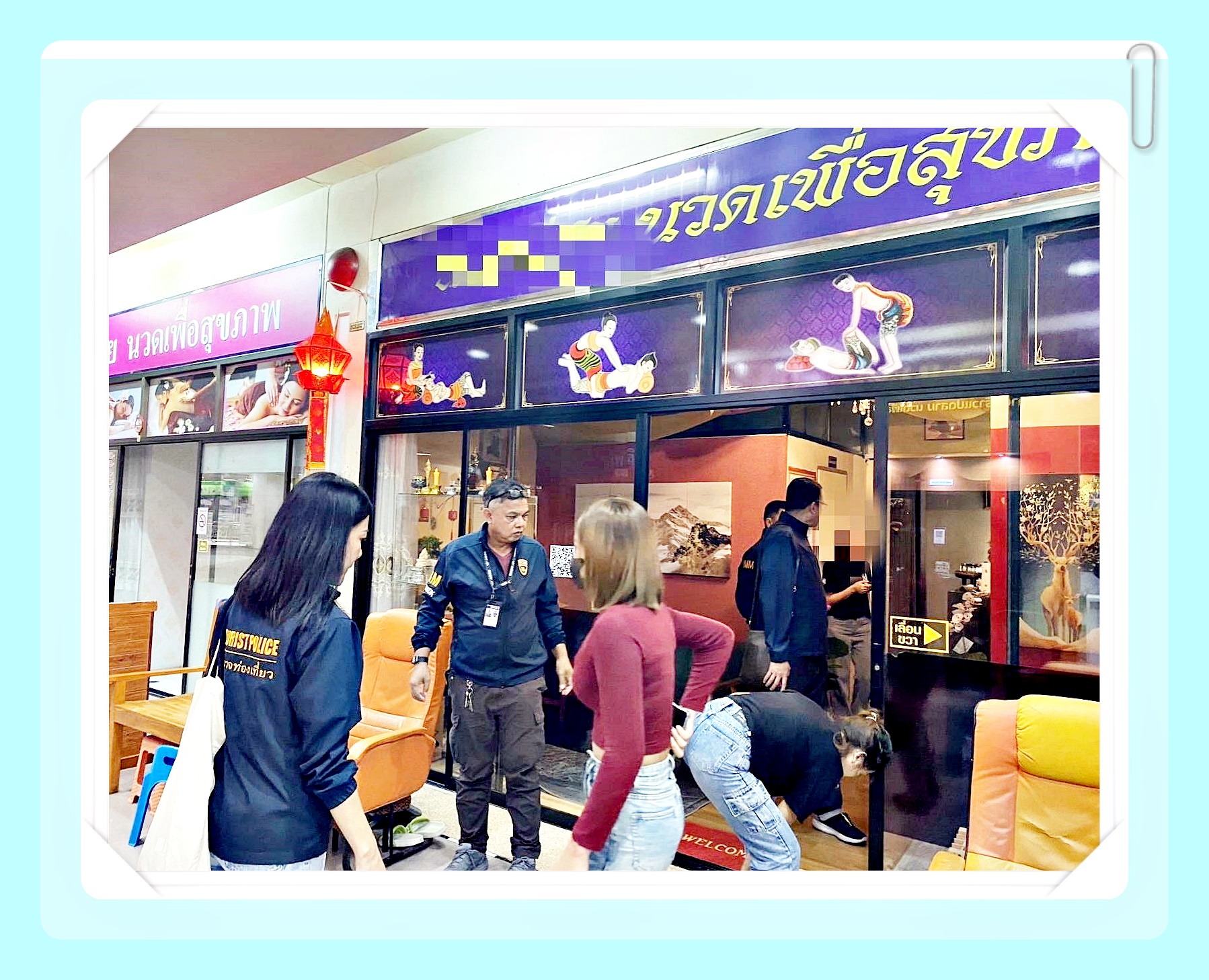 จากการตรวจสอบร้านนวดที่ตั้งอยู่ภายในห้างสรรพสินค้าดังกล่าว จำนวน 18 ร้าน พบการกระทำความผิดตาม