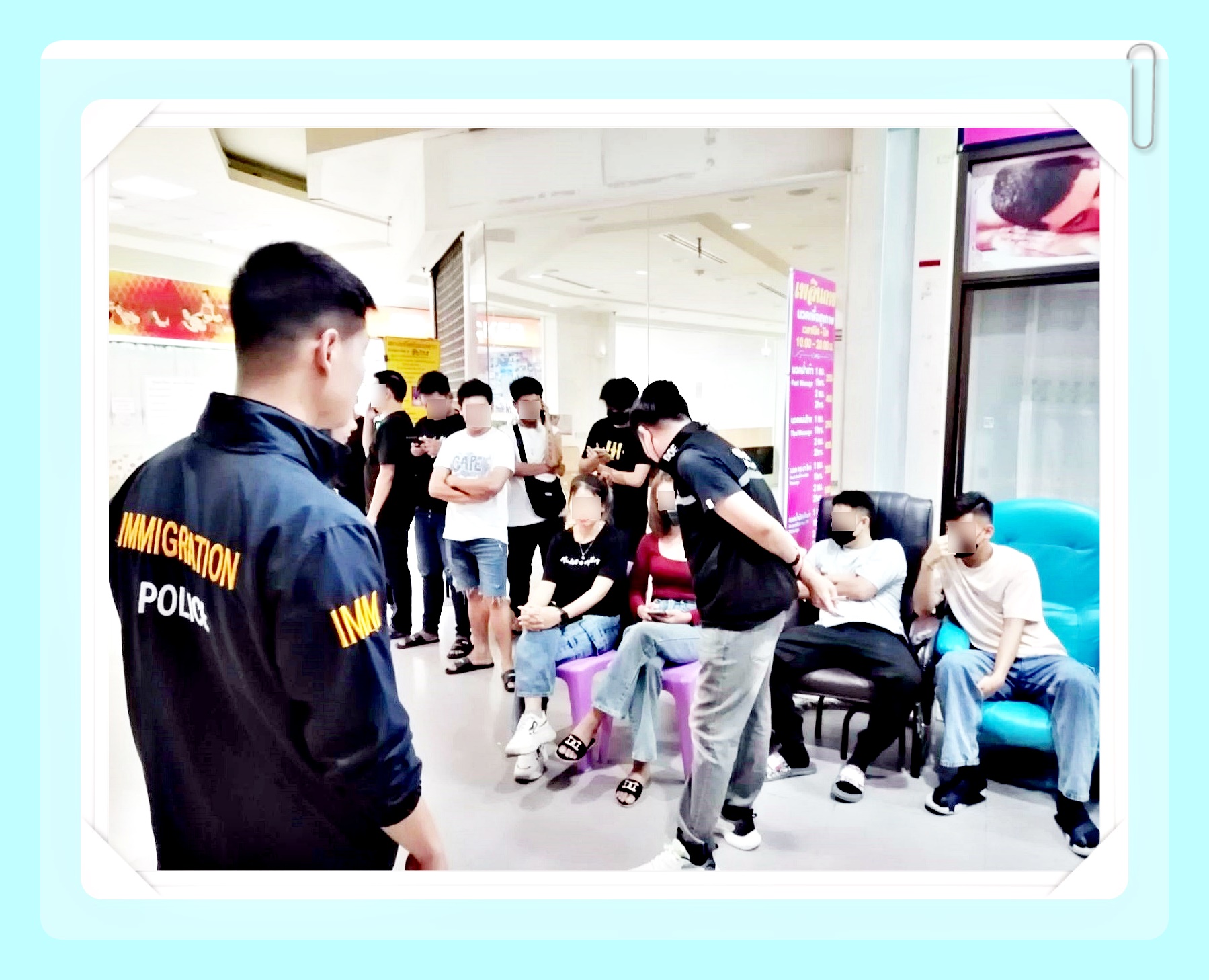 (เมียนมา 8 คน) (ลาว 5 คน) (กัมพูชา 1 คน) เจ้าหน้าที่จึงสั่งให้บุคคลดังกล่าวไปรายงานตัวต่อพนักงานสอบสวน