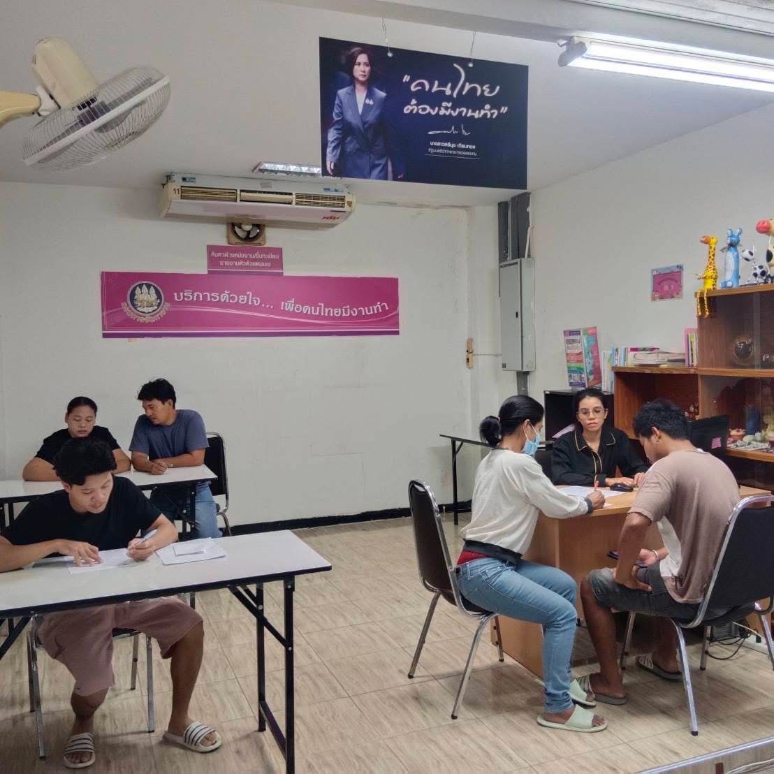 เจ้าหน้าที่ฝ่ายส่งเสริมการมีงานทำ ขับเคลื่อนนโยบาย “คนไทยต้องมีงานทำ” ของนางสาวตรีนุช เทียนทอง รัฐมนตรีว่าการกระทรวงแรงงาน โดยดำเนินการประชาสัมพันธ์ศูนย์คนไทยต้องมีงานทำ สร้างการรับรู้ และเชิญชวนประชาชนเข้ารับบริการ พร้อมลงพื้นที่พบนายจ้าง/สถานประกอบการ เพื่อขอตำแหน่งงานว่างและอำนวยความสะดวกในการรับสมัครเบื้องต้น