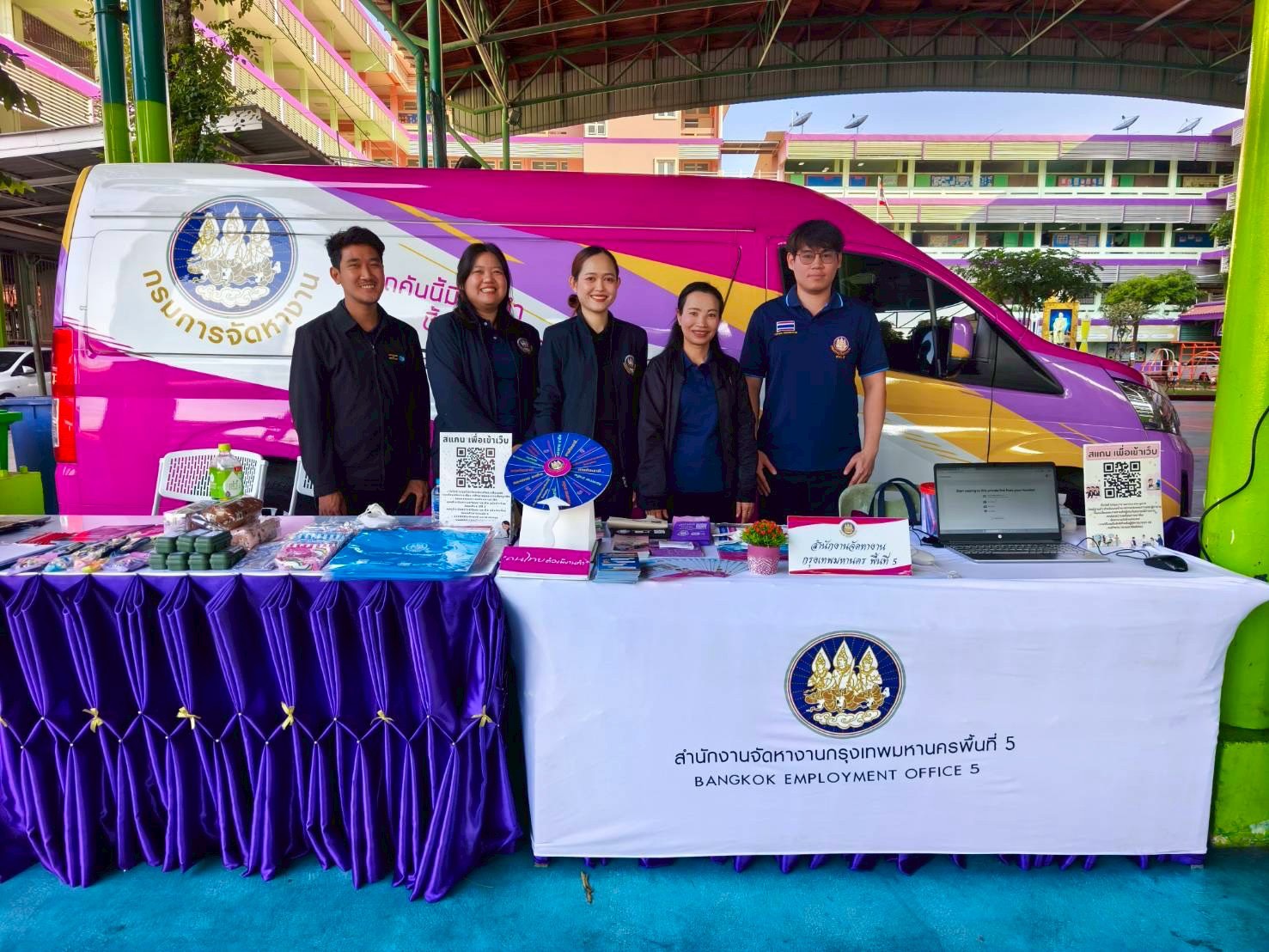 นางมาลาริน หวังสะมะแอล นักวิชาการแรงงานชำนาญการพิเศษ รักษาราชการแทนผู้อำนวยการสำนักงานจัดหางานกรุงเทพมหานครพื้นที่ 5 มอบหมายให้เจ้าหน้าที่ฝ่ายส่งเสริมการมีงานทำ และฝ่ายตรวจและคุ้มครองคนหางาน บูรณาการร่วมกับกองพัฒนาระบบบริการจัดหางาน กรมการจัดหางาน เข้าร่วมกิจกรรมโลกกว้างทางการศึกษาและอาชีพ ณ บริเวณลานอเนกประสงค์ โรงเรียนวัดเกาะสุวรรณาราม แขวงคลองถนน เขตสายไหม กรุงเทพมหานคร