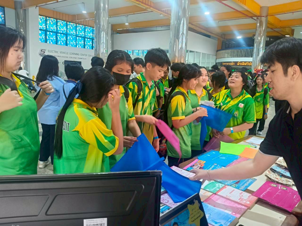 วันศุกร์ที่ 19 ธันวาคม 2568 นางนุชจรีย์ พรหมวัลย์ ผู้อำนวยการสำนักงานจัดหางานกรุงเทพมหานครพื้นที่ 6 มอบหมายเจ้าหน้าที่ฝ่ายส่งเสริมการมีงานทำ บูรณาการร่วมกับวิทยาลัยเทคโนโลยีสยาม (สยามเทค) ตามโครงการเตรียมความพร้อมแก่กลุ่มเป้าหมายก่อนเข้าสู่ตลาดแรงงาน กิจกรรมเปิดประตูสู่อาชีพให้นักเรียน นักศึกษา ประจำปีงบประมาณ พ.ศ. 2569 โดยให้ความรู้ด้านภารกิจกรมการจัดหางาน ข้อมูลข่าวสารตลาดแรงงาน วิธีการเลือกงานที่เหมาะสมกับตนเอง รวมถึงจัดกิิจกรรมให้นักเรียนเล่นเกมส์ทายอาชีพและแจกของรางวัล ซึ่งมีนักเรียนเข้าร่วมกิจกรรมฯ รวมทั้งสิ้นจำนวน 500 คน ณ วิทยาลัยเทคโนโลยีสยาม (สยามเทค) แขวงวัดท่าพระ เขตบางกอกใหญ่ กรุงเทพมหานคร