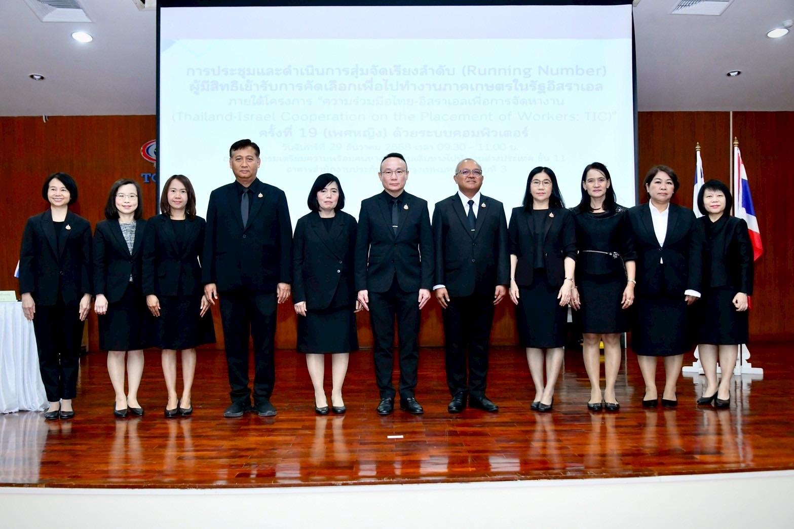 วันจันทร์ที่ 29 ธันวาคม พ.ศ. 2568 นางนุชจรีย์ พรหมวัลย์ ผู้อำนวยการสำนักงานจัดหางานกรุงเทพมหานครพื้นที่ 6 พร้อมด้วยเจ้าหน้าที่ฝ่ายส่งเสริมการมีงานทำ เข้าร่วมเป็นเกียรติการประชุมและดำเนินการสุ่มจัดเรียงลำดับ (Running Number) ผู้มีสิทธิเข้ารับการคัดเลือกเพื่อไปทำงานภาคเกษตรในรัฐอิสราเอล ครั้งที่ 19 (เพศหญิง) ด้วยระบบคอมพิวเตอร์ โดยมีนายสมชาย มรกตศรีวรรณ อธิบดีกรมการจัดหางาน เป็นประธานในพิธี ณ ศูนย์อบรมเตรียมความพร้อมคนหางานก่อนเดินทางไปทำงานต่างประเทศ ชั้น 11 อาคารสำนักงานประกันสังคมกรุงเทพมหานครพื้นที่ 3