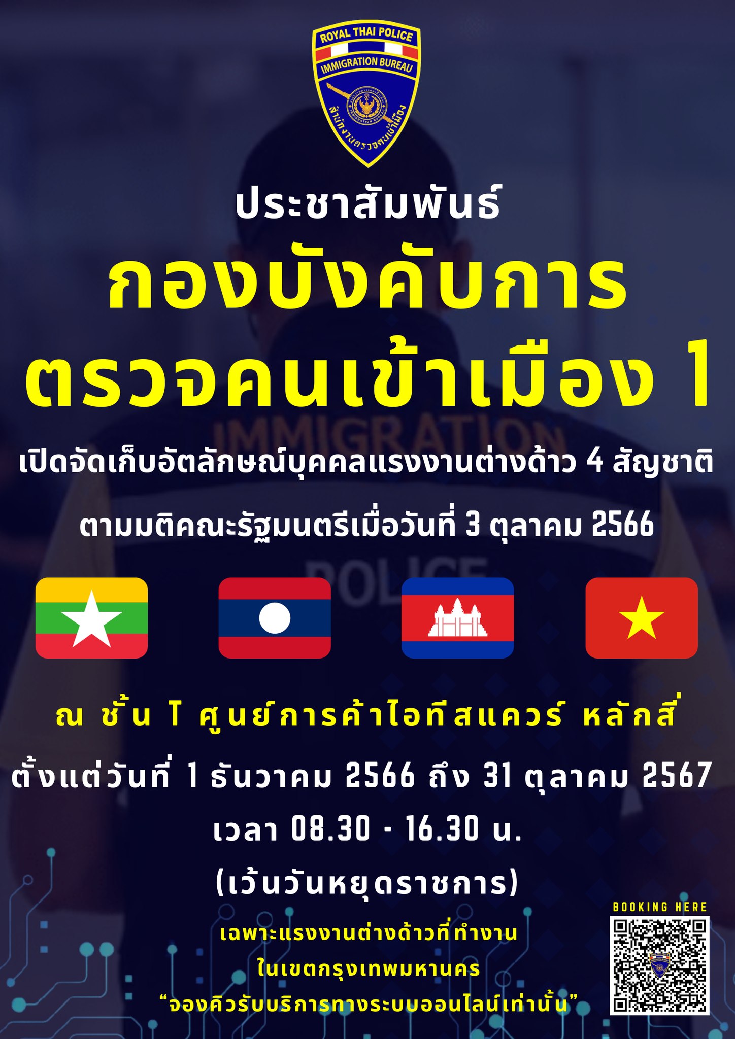 1) ทะเบียนใบอนุญาตทำงานของคนต่างด้าวตามมติคณะรัฐมนตรีเมื่อวันที่ 3 ตุลาคม 2566 (เอกสารฉบับนี้ใช้แทนใบอนุญาตทำงาน)