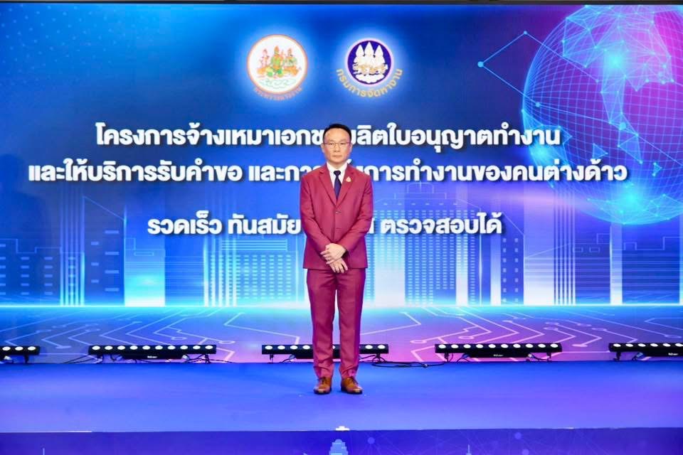 วันที่ 2 กรกฎาคม 2568 เวลา 10.00 น. นายสมชาย มรกตศรีวรรณ อธิบดีกรมการจัดหางาน เป็นประธานงานแถลงข่าวโครงการจ้างเหมาเอกชนผลิตใบอนุญาตทำงานและให้บริการรับคำขอและการแจ้งการทำงานของคนต่างด้าว (Outsourcing Service) โดยมีนายจำนงค์ ทรงเคารพ ผู้ตรวจราชการกรม กรมการจัดหางานกล่าวรายงาน พร้อมด้วยนายมงคล สงคราม รองอธิบดีกรมการจัดหางาน นายฉัตรณพัฒน์ อังกูรพัฒนาสุข ผู้อำนวยการสำนักงานจัดหางานกรุงเทพมหานครพื้นที่ 9 เจ้าหน้าที่และหน่วยงานที่เกี่ยวข้องร่วมเป็นเกียรติ ณ โรงแรมมิราเคิล แกรนด์ เขตหลักสี่ กรุงเทพมหานคร