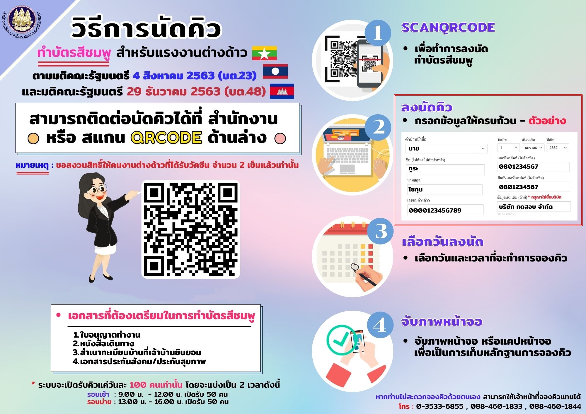 วิธีนัดคิว ทำบัตรชมพู สำหรับแรงงานต่างด้าว ตามมติครม. 4 ส.ค.2563(บต.23) และตามมติครม. 29 ธ.ค. 2563 (บต.48)