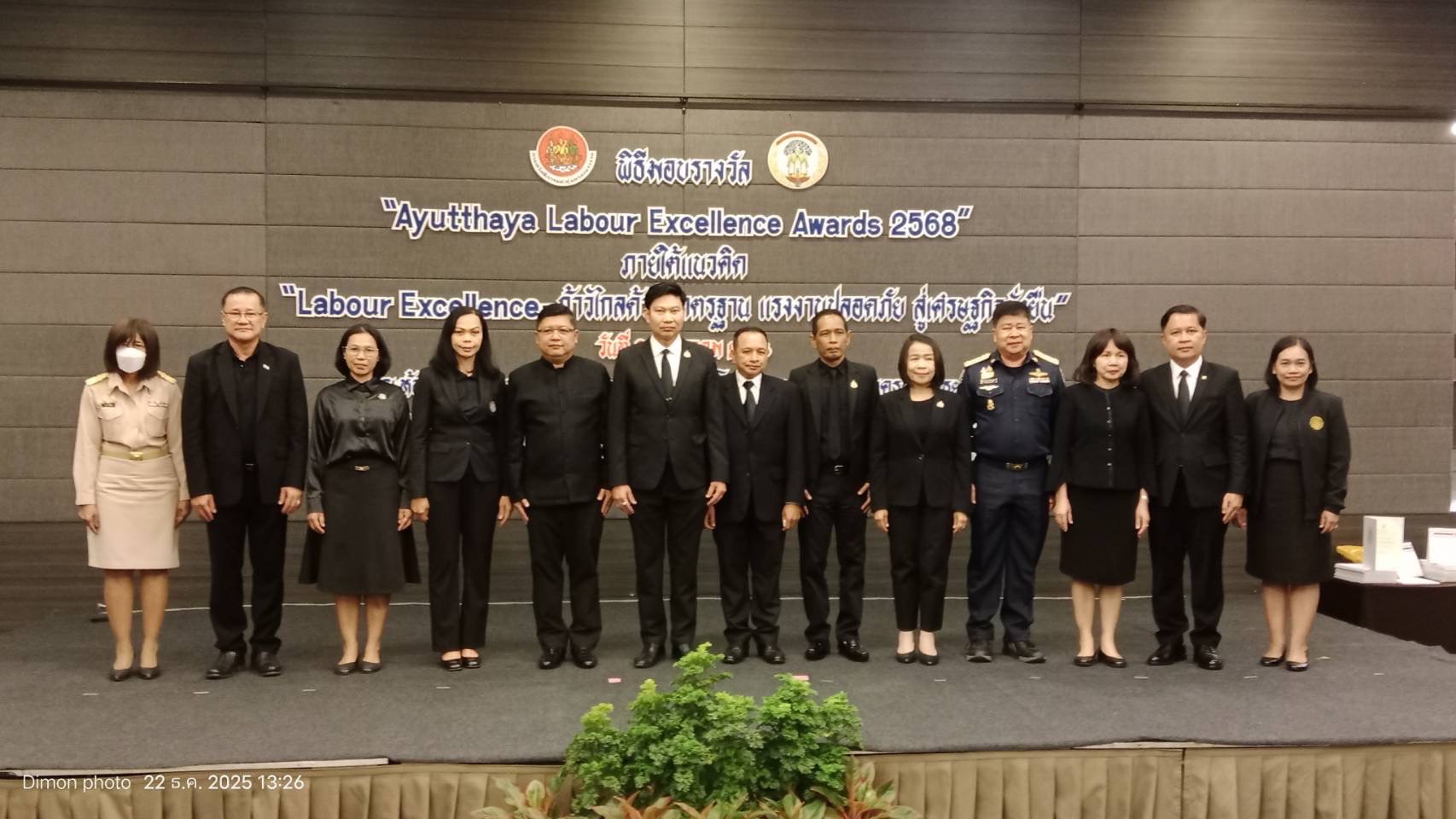วันจันทร์ที่ 22 ธันวาคม พ.ศ. 2568 เวลา 12.30 น. นางสาวสุภิญญา แก่นจ้าย จัดหางานจังหวัดพระนครศรีอยุธยา ร่วมเป็นเกียรติในพิธีเปิดงานมอบรางวัล “Ayutthaya Labour Excellence Awards 2568” ซึ่งมีนายวรวิทย์ ยอแสง รองผู้ว่าราชการจังหวัด กล่าวรายงาน โดยมีนายพงษ์เทพ เพชรโสม รองอธิบดีกรมสวัสดิการและคุ้มครองแรงงาน เป็นประธานในพิธี ณ ห้องประชุมอู่ทอง 1-2 โรงแรมคลาสสิคคามิโอ อำเภอพระนครศรีอยุธยา จังหวัดพระนครศรีอยุธยา