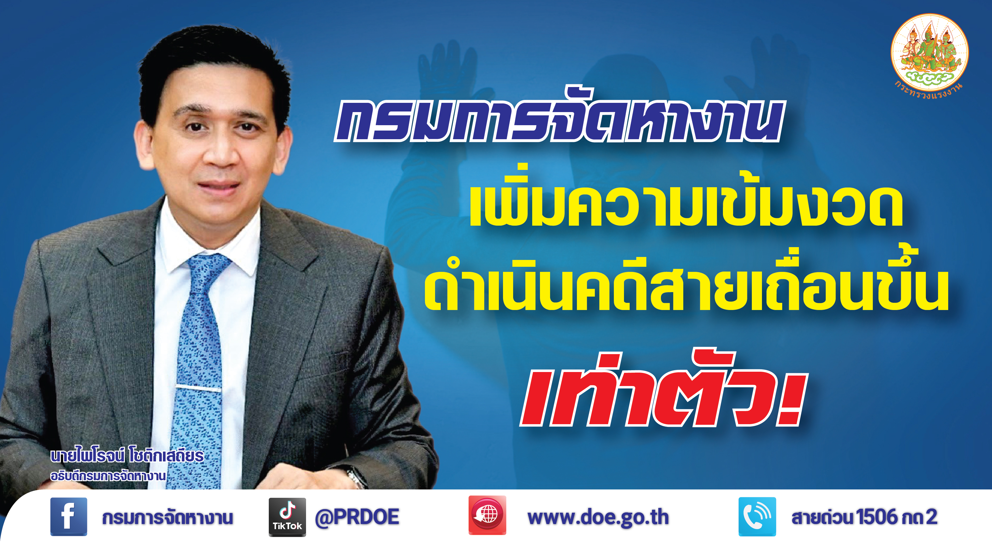 “กรมการจัดหางานขอย้ำเตือนว่า ผู้ที่อ้างว่าจัดหางานให้คนหางานเพื่อไปทํางานในต่างประเทศ แต่ไม่ได้รับใบอนุญาตจากกรมการจัดหางาน จะได้รับโทษ จำคุกตั้งแต่ 3 - 10 ปี หรือปรับ ตั้งแต่ 60,000 - 200,000 บาทหรือทั้งจำทั้งปรับ ผู้โฆษณาชักชวนคนหางานไปทำงานต่างประเทศโดยใช้สื่ออินเตอร์เน็ตและสังคมออนไลน์ จะได้รับโทษจำคุกไม่เกิน 3 ปี ปรับไม่เกิน 60,000 บาท หรือทั้งจำทั้งปรับ และผู้ที่หลอกลวงว่าสามารถ หางาน หรือสามารถส่งไปฝึกงานในต่างประเทศได้และทำให้สูญเสียเงิน หรือทรัพย์สิน จะได้รับโทษจำคุกตั้งแต่ 3 - 10 ปี หรือปรับตั้งแต่ 60,000 - 200,000 บาท หรือทั้งจําทั้งปรับ” อธิบดีกรมการจัดหางาน กล่าว