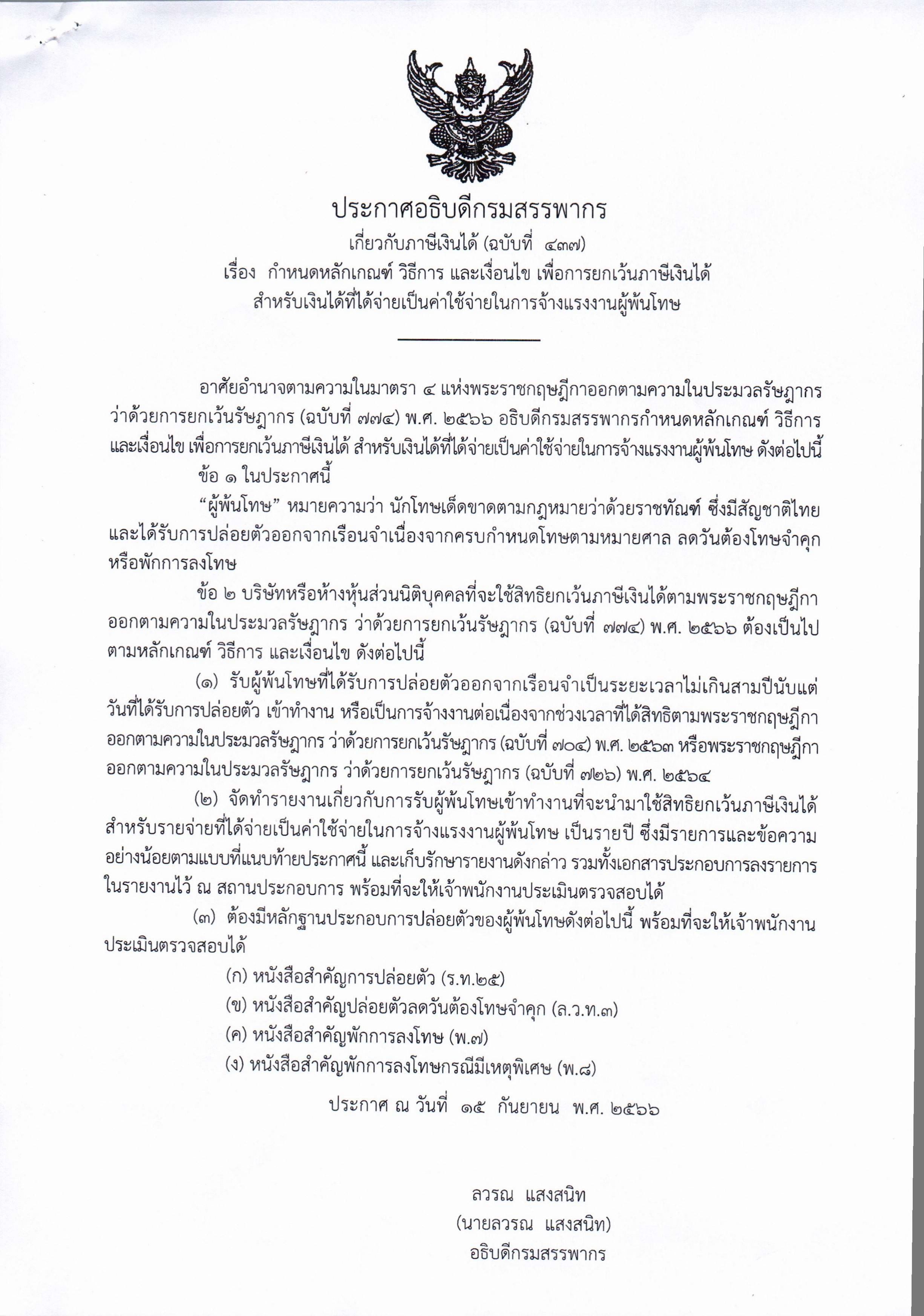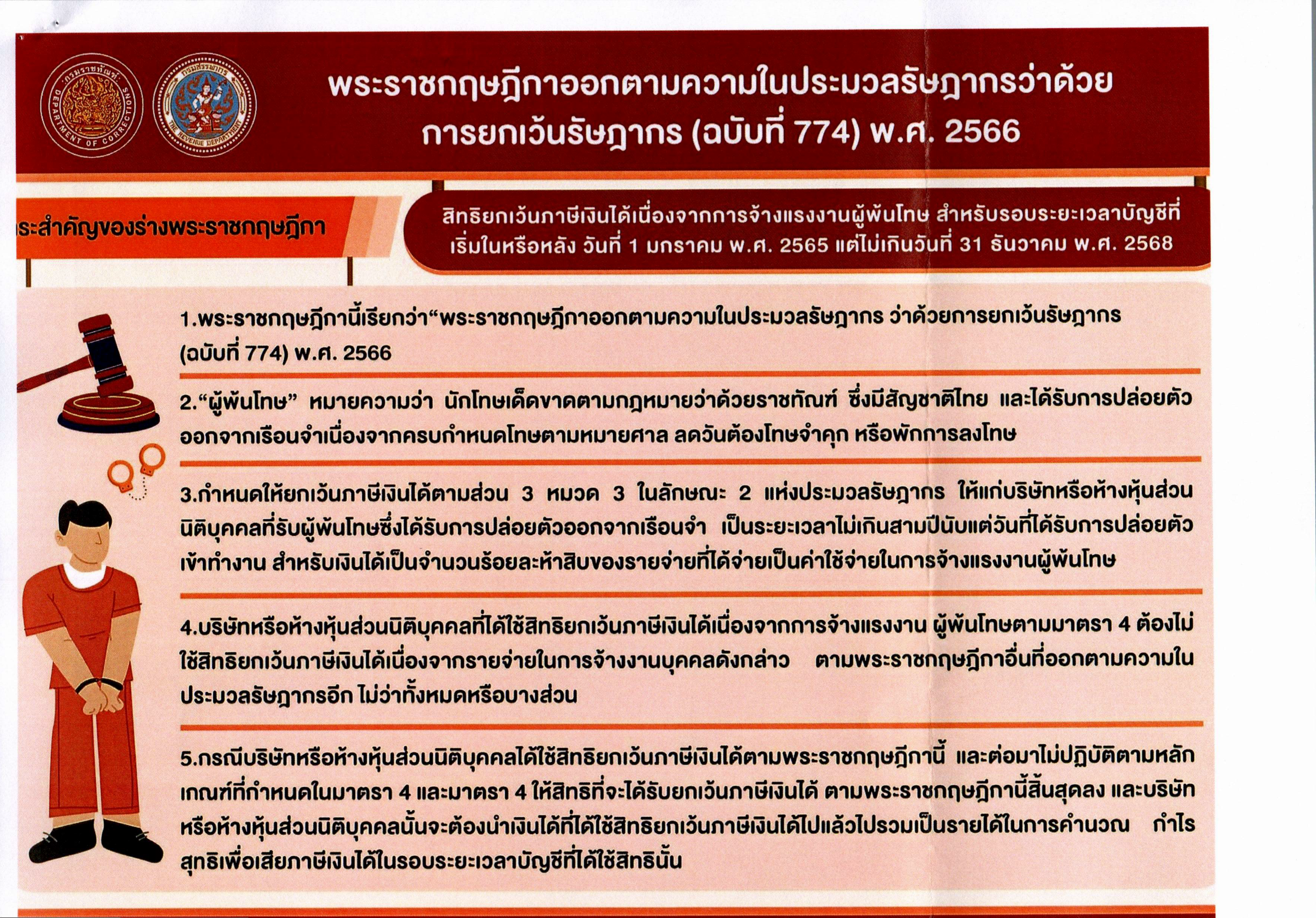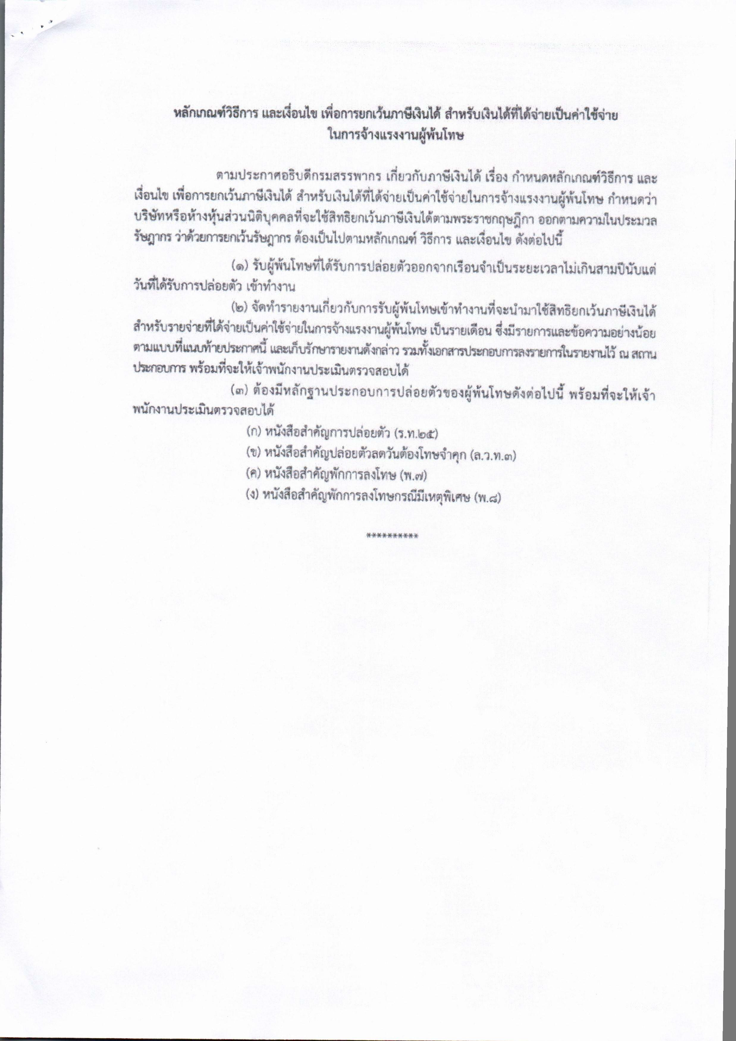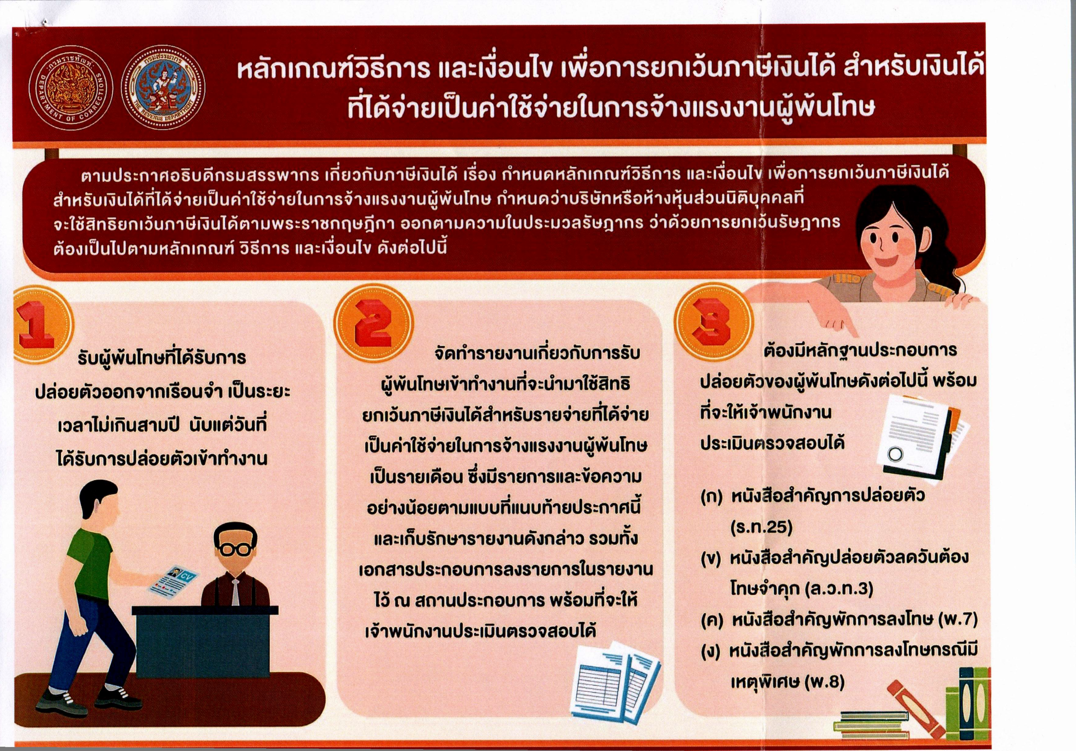 สำหรับเงินได้ที่ได้จ่ายเป็นค่าใช้จ่ายในการ “จ้างแรงงานผู้พ้นโทษ” โดยมีหลักเกณฑ์วิธีการ เงื่อนไข ดังนี้