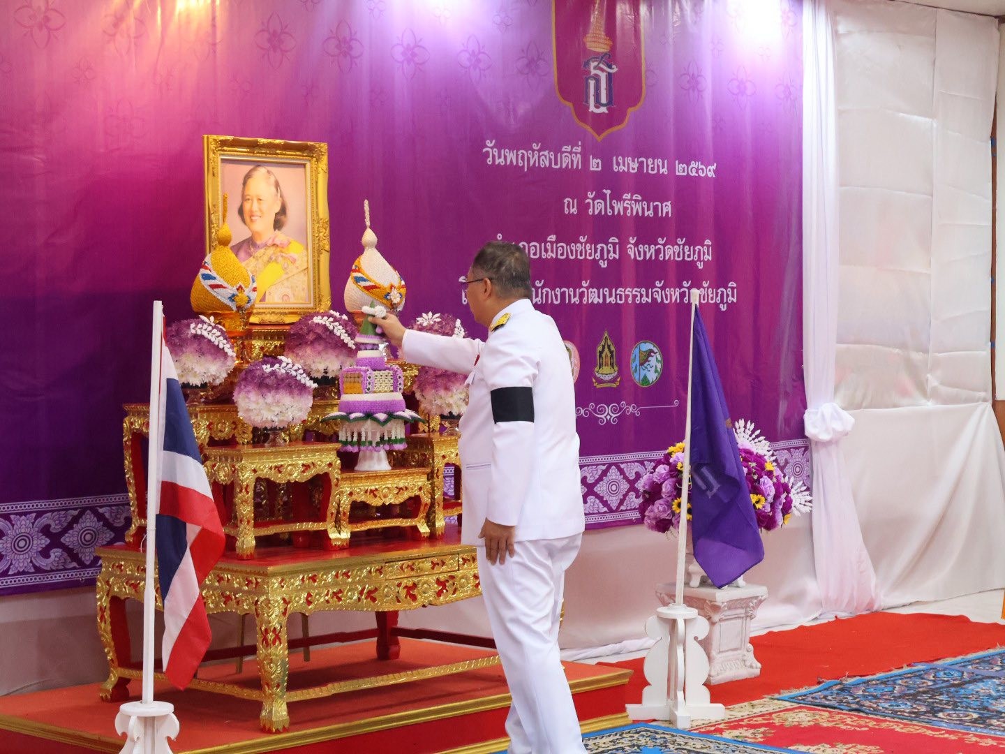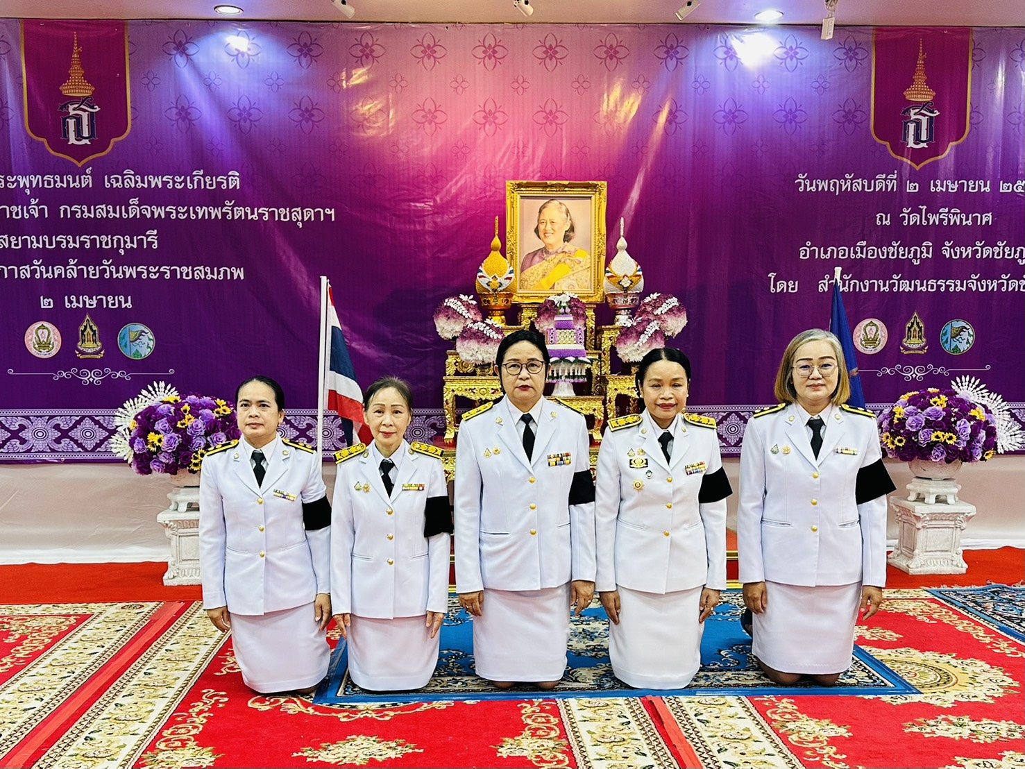 วันพฤหัสบดีที่ 2 เมษายน 2569 นางชุติมา จุมังมอ จัดหางานจังหวัดชัยภูมิ พร้อมด้วยข้าราชการและเจ้าหน้าที่ เข้าร่วมพิธีเจริญพระพุทธมนต์ และทำบุญตักบาตรเฉลิมพระเกียรติ สมเด็จพระกนิษฐาธิราชเจ้า กรมสมเด็จพระเทพรัตนราชสุดาฯ สยามบรมราชกุมารีเนื่องในโอกาสวันคล้ายวันพระราชสมภพ 2 เมษายน 2569 ณ วัดไพรีพินาศ ตำบลในเมือง อำเภอเมืองชัยภูมิ จังหวัดชัยภูมิ โดยมีนายอนันต์ นาคนิยม ผู้ว่าราชการจังหวัดชัยภูมิ เป็นประธานในพิธี