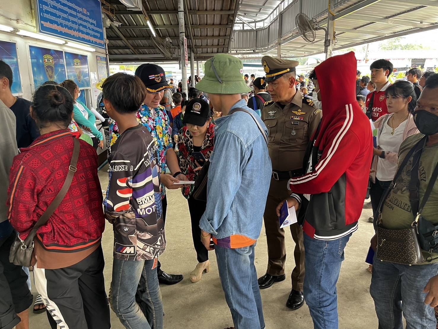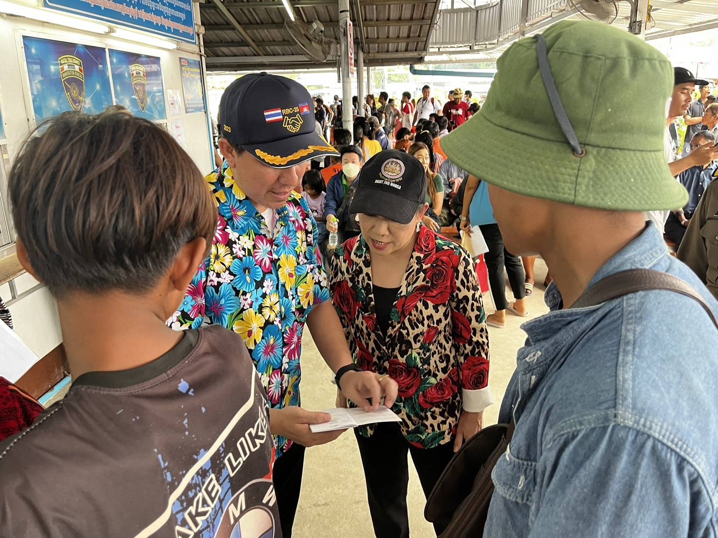 วันที่ 10 เมษายน 2567 นางสาวอนงค์นุช มีศิริ จัดหางานจังหวัดจันทบุรี พร้อมด้วยเจ้าหน้าที่ฝ่ายควบคุมการทำงานของคนต่างด้าว สำนักงานจัดหางานจังหวัดจันทบุรี ลงพื้นที่ด่านถาวรบ้านแหลม (ตลาดชายแดนไทย-กัมพูชา) อำเภอโป่งน้ำร้อน จังหวัดจันทบุรี สังเกตการณ์การเดินทางกลับประเทศของแรงงานกัมพูชาในช่วงเทศกาลสงกรานต์ โดยมี พ.ต.ท.ฤชุภัทร หลาวทอง สว.ตม.จว.จันทบุรี และเจ้าหน้าที่ ประสานงานและอำนวยความสะดวก โดยบรรยากาศเป็นไปด้วยความเรียบร้อย เจ้าหน้าที่ของไทยได้จัดเตรียมเต็นท์สำหรับนั่งพักคอยให้กับแรงงานกัมพูชาระหว่างรอที่จะเดินทางกลับประเทศ