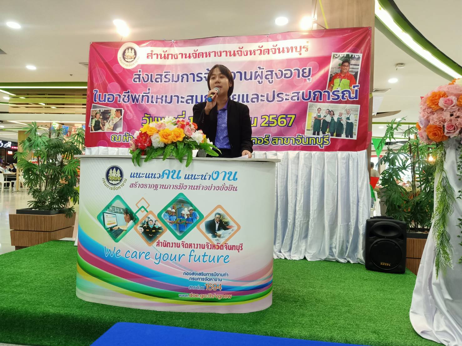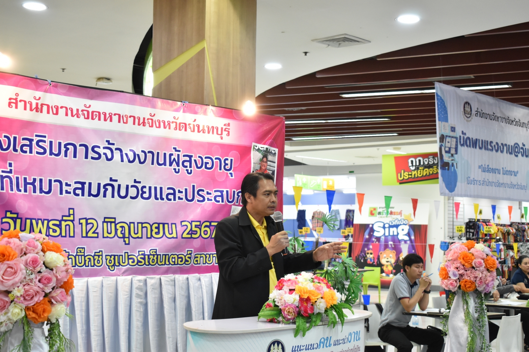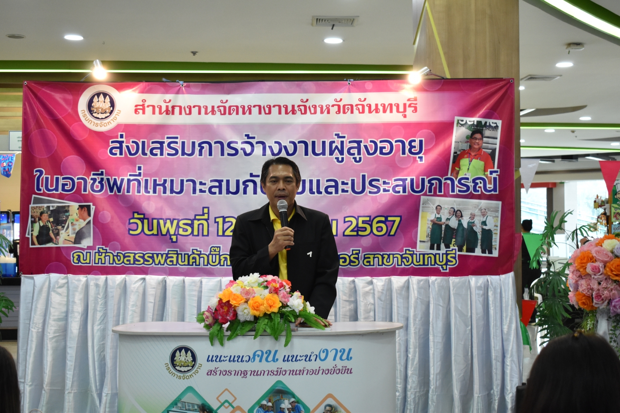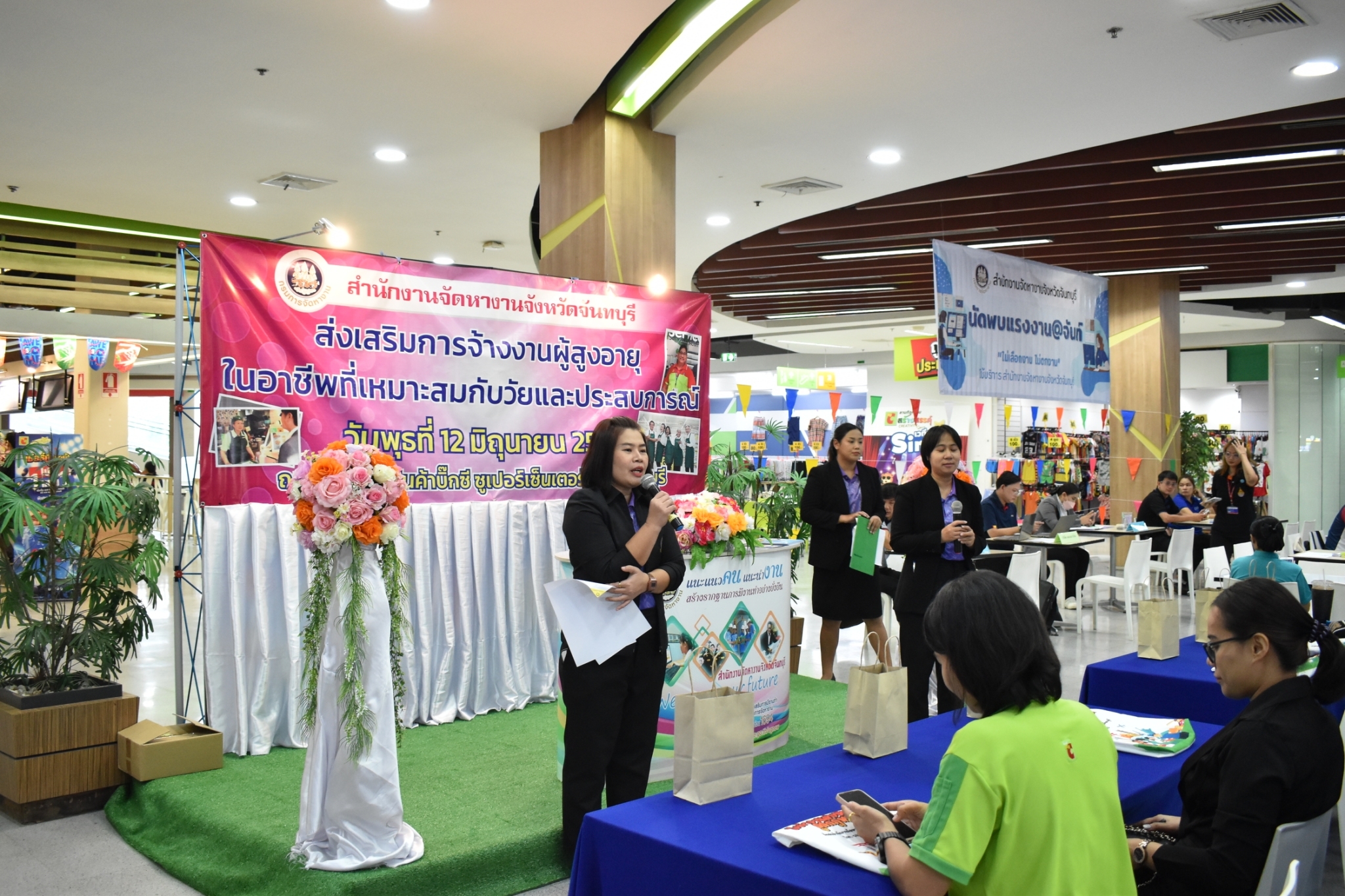 วันที่ 12 มิถุนายน 2567 สำนักงานจัดหางานจังหวัดจันทบุรี ดำเนินโครงการขยายโอกาสการมีงานทำ ให้ผู้สูงอายุ กิจกรรมส่งเสริมการจ้างงานผู้สูงอายุในอาชีพที่เหมาะสมกับวัยและประสบการณ์ เพื่อสร้างการรับรู้ สร้างความเข้าใจในมาตรการและสิทธิประโยชน์ต่างๆ แก่นายจ้าง/สถานประกอบการ ในการจ้างงานที่เหมาะสมสำหรับผู้สูงอายุ จำนวน 14 แห่ง ณ ห้างสรรพสินค้าบิ๊กซี ซูเปอร์เซ็นเตอร์ สาขาจันทบุรี ต.ตลาด อ.เมืองจันทบุรี จ.จันทบุรี