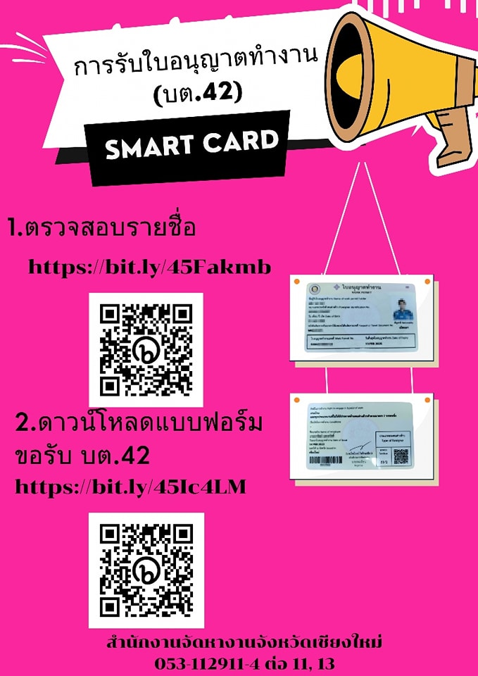 ขณะนี้กรมการจัดหางานได้จัดส่งใบอนุญาตทำงาน บต.42 (Smart Card) สำหรับแรงงานฯ ที่ต่ออายุตามมติ ครม. 5 ก.ค.65