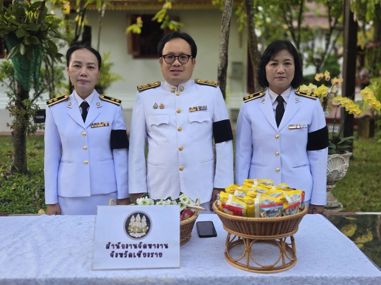 วันพฤหัสบดีที่ 30 ตุลาคม 2568 เวลา 07.30 น.นายธวัช วงค์ริน นักวิชาการแรงงานชำนาญการพิเศษ รักษาราชการแทน จัดหางานจังหวัดเชียงราย มอบหมายให้ นายสหการ เขื่อนแปด นักวิชาการ แรงงานชำนาญการ พร้อมเจ้าหน้าที่สำนักงานฯ เข้าร่วมพิธีทำบุญตักบาตรถวายพระราชกุศล และพิธีบำเพ็ญกุศลสัตตมวาร (7 วัน) เพื่ออุทิศถวายเป็น พระราชกุศลแด่ สมเด็จพระนางเจ้าสิริกิติ์ พระบรมราชินีนาถพระบรมราชชนนีพันปีหลวง โดยมีนายรัฐพล นราดิศร ผู้ว่าราชการจังหวัดเชียงราย เป็นประธานในพิธี ณ วัดพระแก้ว พระอารามหลวง ตำบลเวียง อำเภอเมืองเชียงราย จังหวัดเชียงราย