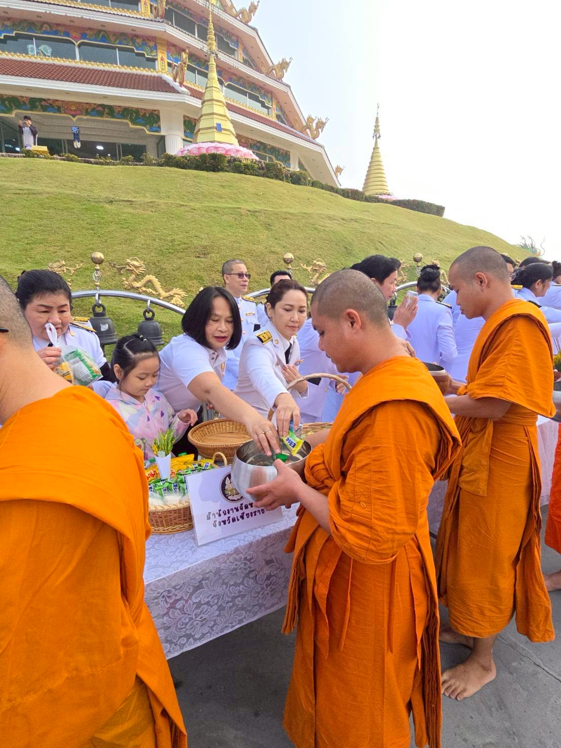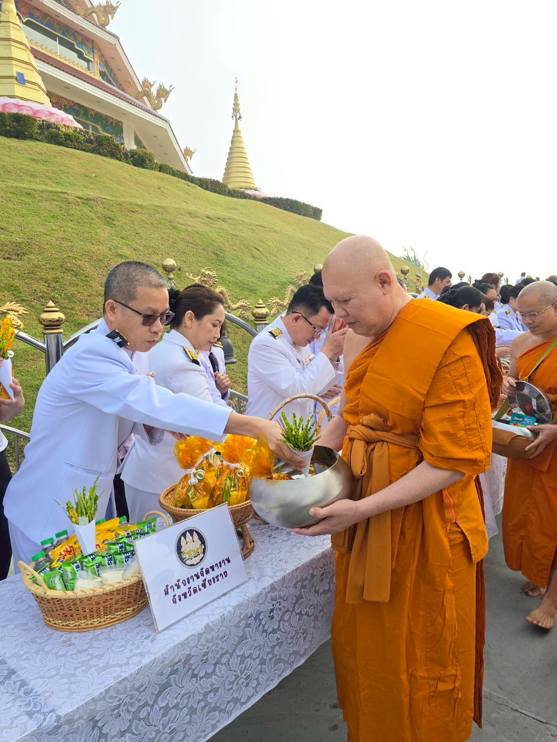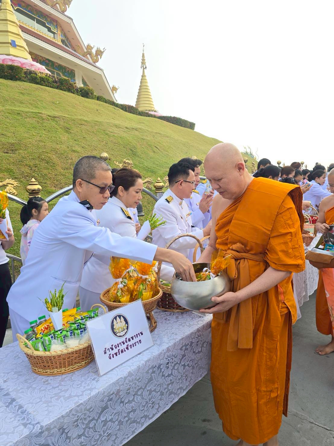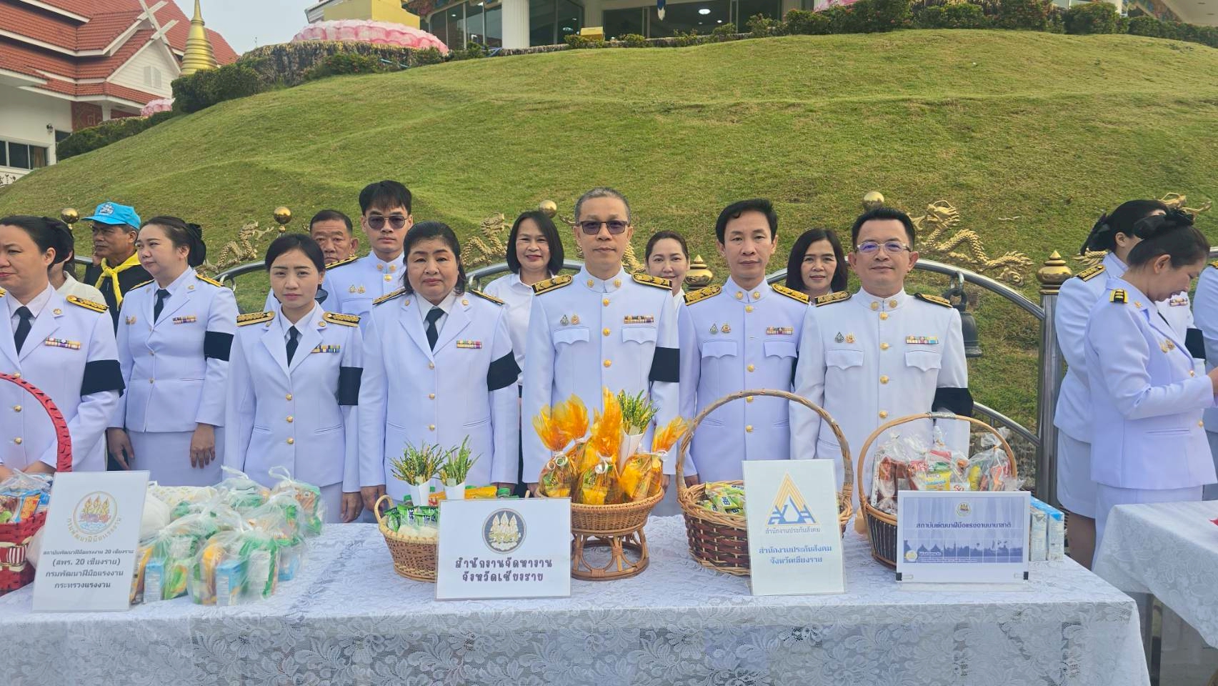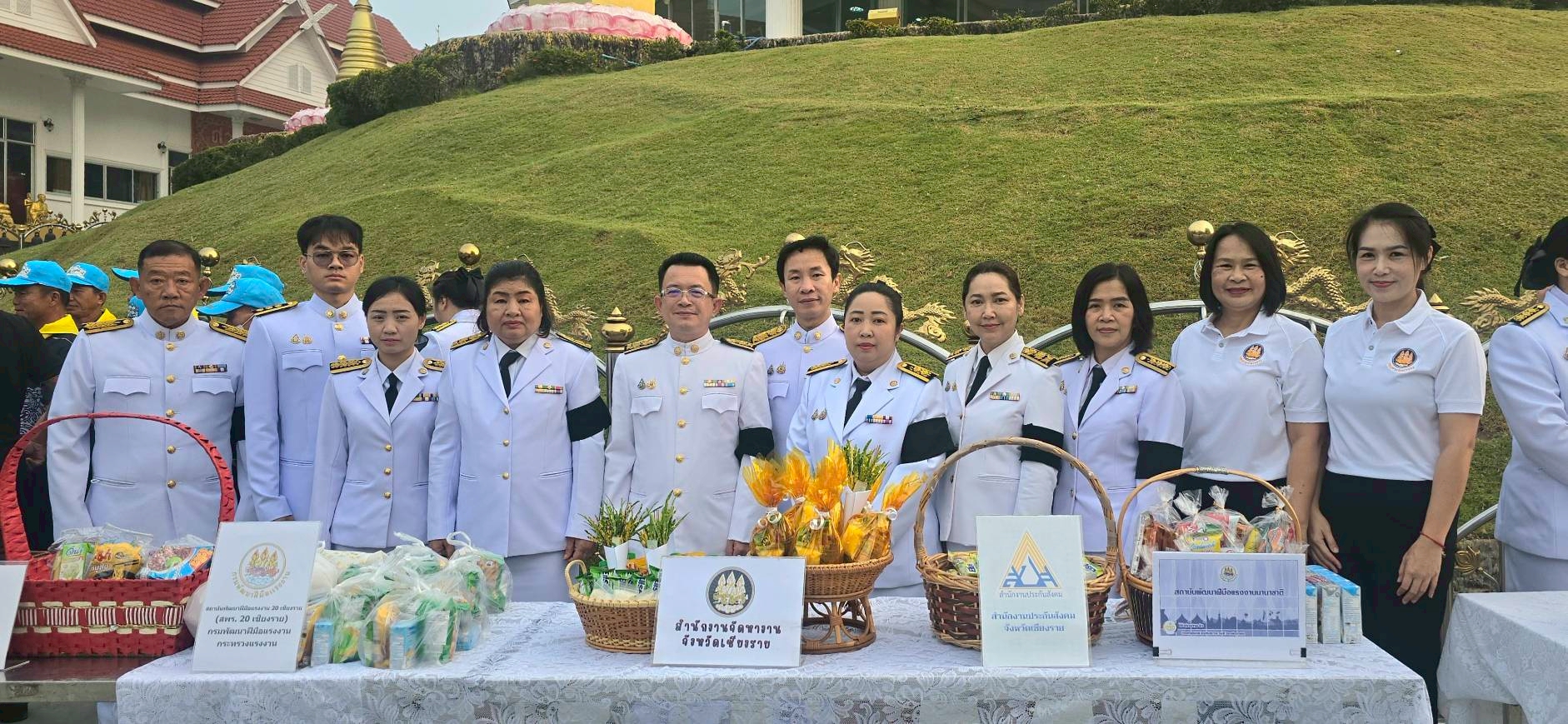 วันอาทิตย์ที่ 7 ธันวาคม 2568 นายธวัช วงค์ริน นักวิชาการแรงงานชำนาญการพิเศษ รักษาการแทนจัดหางานจังหวัดเชียงราย และเจ้าหน้าที่สำนักงานจัดหางานจังหวัดเชียงราย เข้าร่วมพิธีทำบุญตักบาตร เนื่องในโอกาสวันคล้ายวันประสูติสมเด็จพระเจ้าลูกเธอ เจ้าฟ้าพัชรกิติยาภา นเรนทิราเทพยวดี กรมหลวงราชสาริณี สิริพัชร มหาวัชรราชธิดา เพื่อเป็นการแสดงความ จงรักภักดี และเพื่อถวายพระพรให้ทรงหายจากพระอาการประชวรโดยเร็ว โดยมี นายชูชีพ พงษ์ไชย ผู้ว่าราชการจังหวัดเชียงราย เป็นประธานในพิธีฯ ณ วัดห้วยปลากั้ง ตำบลแม่ยาว อำเภอเมืองเชียงราย จังหวัดเชียงราย