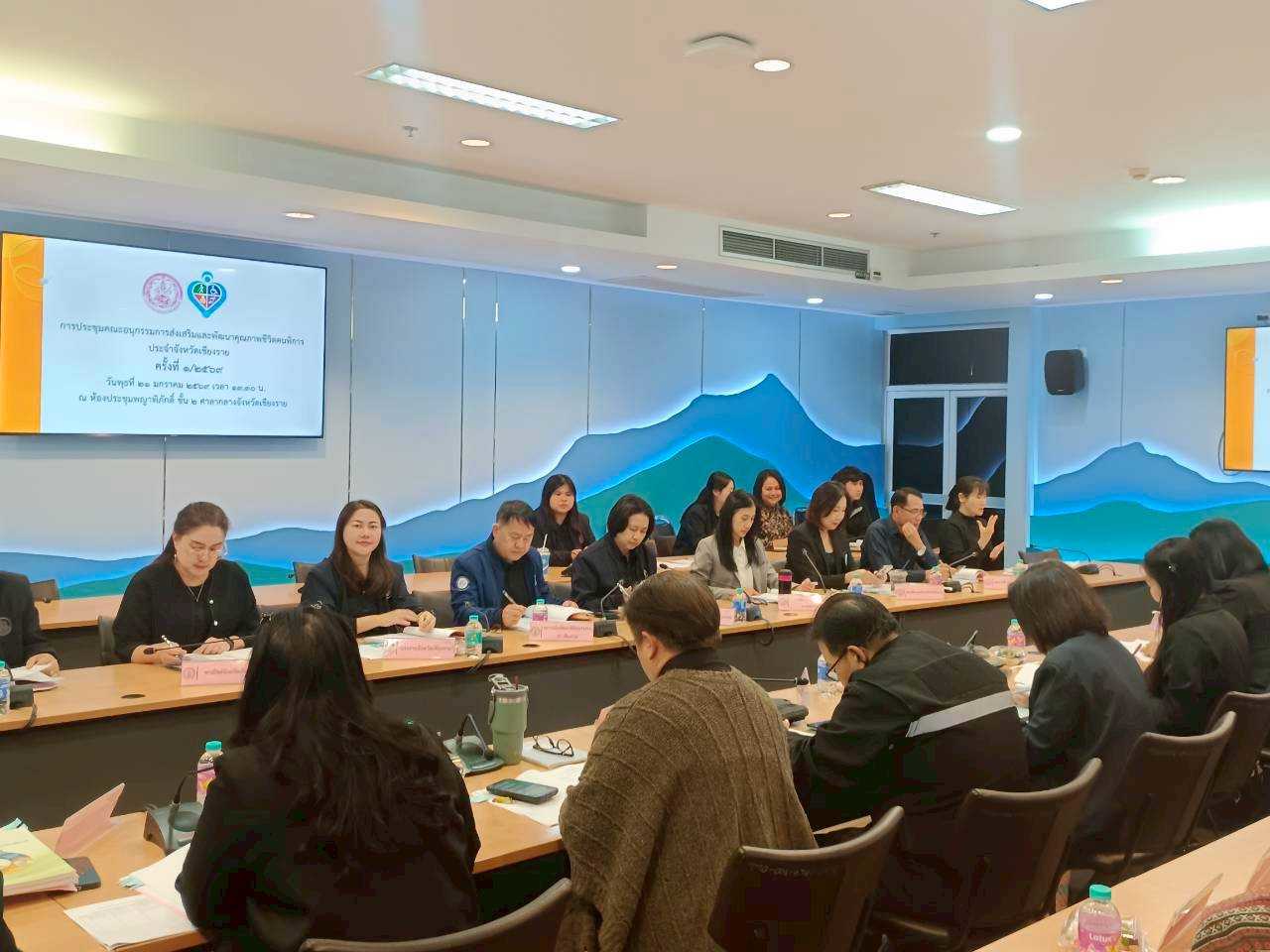 วันพุธที่ 21 มกราคม 2569 เวลา 13.30 น. นางสาวพอหทัย วงศ์สวัสดิ์ จัดหางานจังหวัดเชียงราย เข้าร่วมประชุมคณะอนุกรรมการส่งเสริมและพัฒนาคุณภาพชีวิตคนพิการประจำจังหวัด ครั้งที่ 1/2569 เพื่อพิจารณาอนุมัติโครงการที่ขอรับการสนับสนุนจากกองทุนส่งเสริมและพัฒนาคุณภาพชีวิตคนพิการ และอนุมัติการกู้ยืมเงินคนพิการ/ผู้ดูแลคนพิการ โดยมี นายประสงค์ หล้าอ่อน รองผู้ว่าราชการจังหวัดเชียงราย เป็นประธาน ณ ห้องประชุมพญาพิภักดิ์ ชั้น 2 ศาลากลางจังหวัดเชียงราย