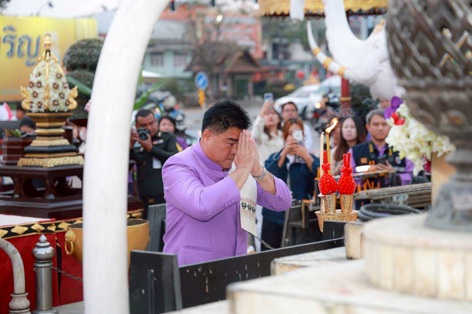 วันจันทร์ที่ 26 มกราคม 2568 เวลา 06.30 น.นางสาวพอหทัย วงศ์สวัสดิ์ จัดหางานจังหวัดเชียงราย พร้อมด้วยบุคลากรในสังกัด เข้าร่วมพิธีบวงสรวงและพิธีทำบุญสืบชะตาเมืองเชียงราย เนื่องในวันพ่อขุนเม็งรายมหาราช 26 มกราคม 2569 เพื่อความร่มเย็นเป็นสุข และความเจริญรุ่งเรืองของเมืองเชียงราย โดยมี นายชูชีพ พงษ์ไชย ผู้ว่าราชการจังหวัดเชียงราย เป็นประธานในพิธี ณ พระบรมราชานุสาวรีย์พ่อขุนเม็งรายมหาราช (5แยกพ่อขุน) จังหวัดเชียงราย
