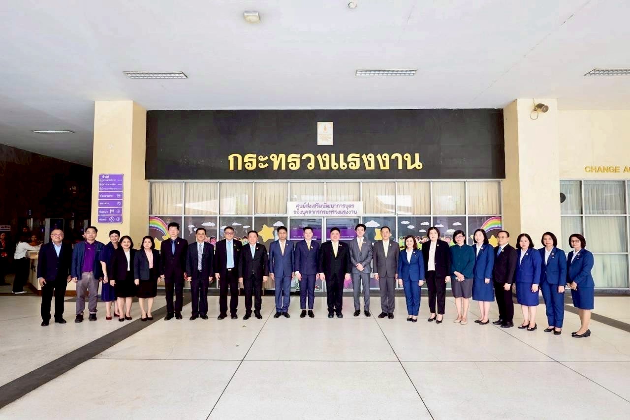 ผู้บริหารกรมการจัดหางาน มอบดอกไม้ให้กำลังใจรัฐมนตรีว่าการกระทรวงแรงงาน เนื่องในโอกาสอำลาตำแหน่งของรัฐมนตรีว่าการกระทรวงแรงงาน
