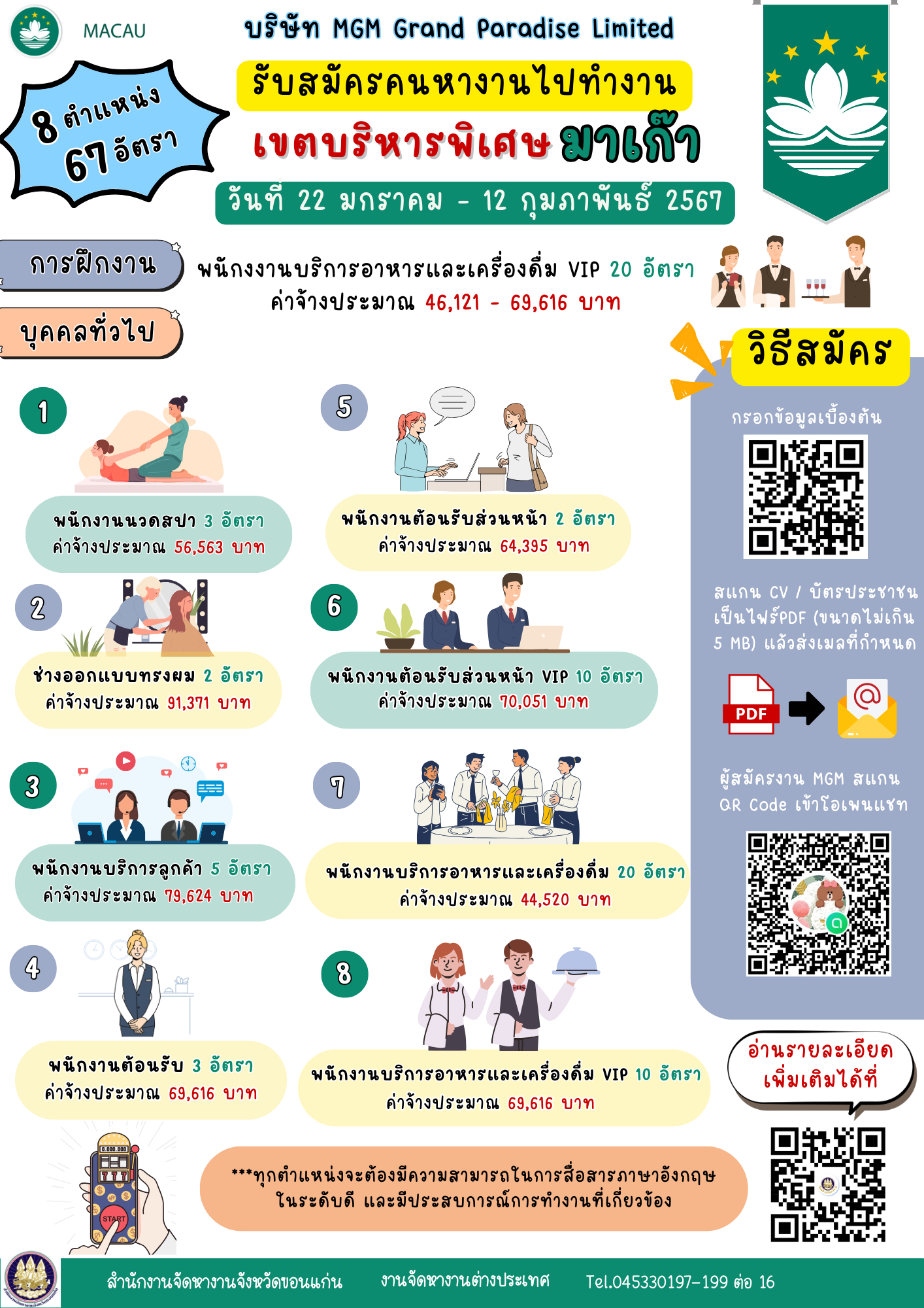 บริษัท MGM Grand Paradise Limited รับสมัครพนักงานชาย – หญิง