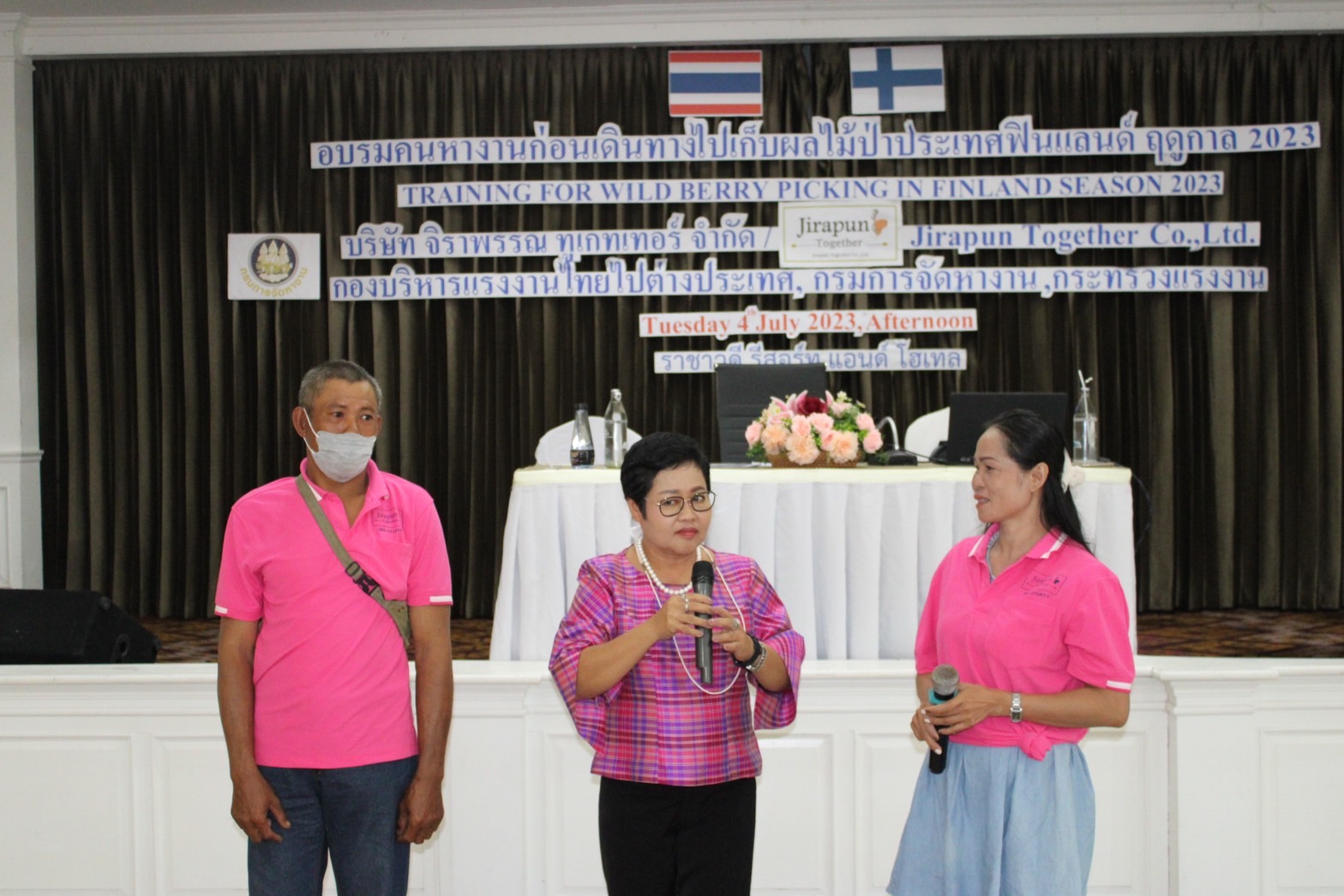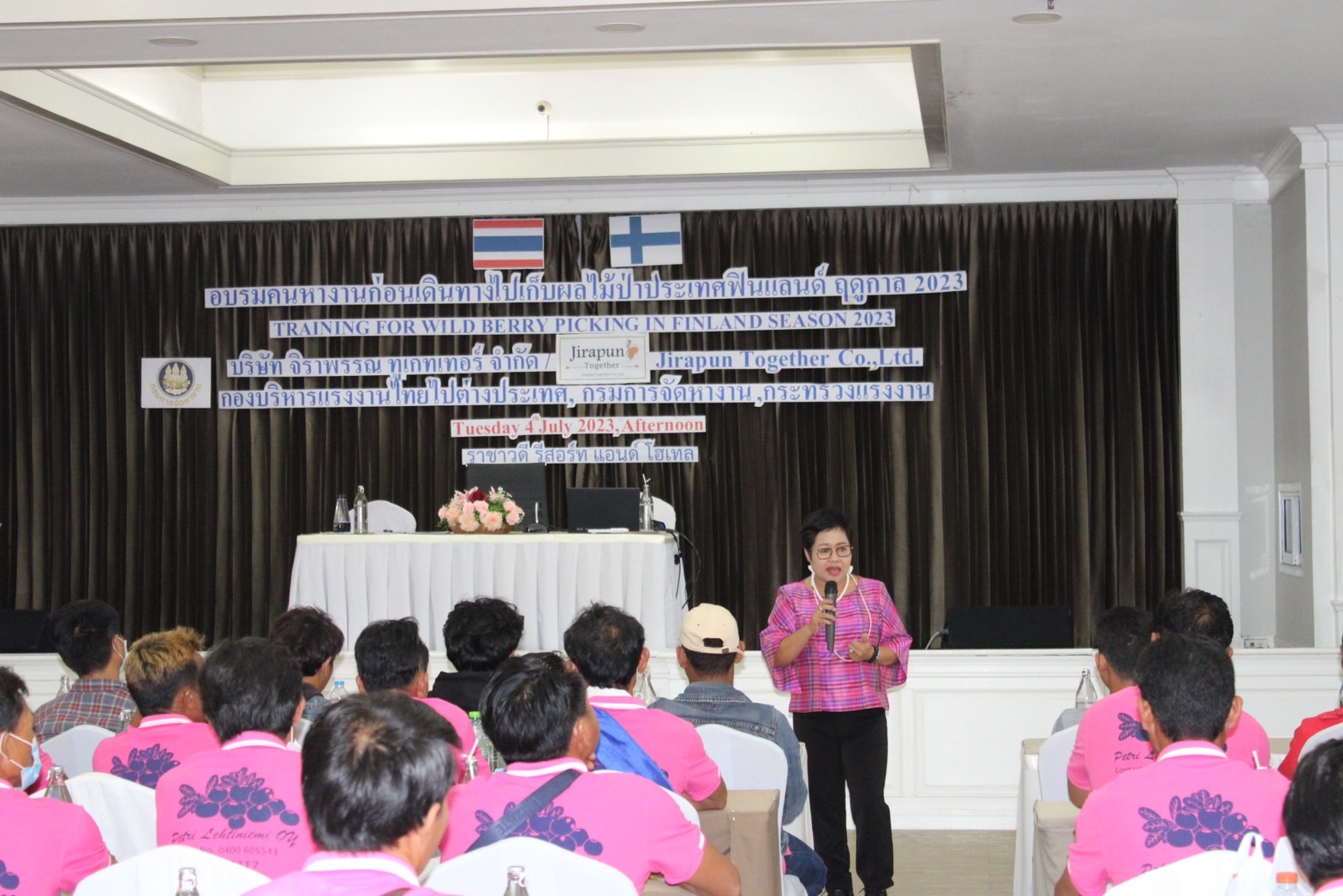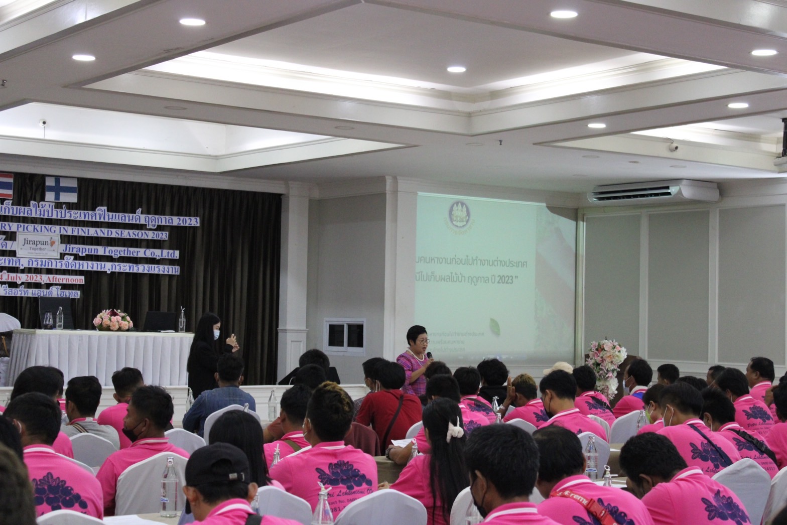 นางอัจฉรา เจริญผล นักวิชาการแรงงานชำนาญการพิเศษรักษาราชการแทนจัดหางานจังหวัดขอนแก่นเข้าร่วมอบรมคนหางานก่อนเดินทางไปทำงานต่างประเทศ กรณีเก็บผลไม้ป่า ฤดูกาล 2023 ณ ประเทศฟินแลนด์ ร่วมกับกองบริหารแรงงานไทยไปต่างประเทศ กรมกราจัดหางาน ณ ราชาวดี รีสอร์ท แอนด์ โฮเทล โดยมีผู้เข้ารับการอบรมทั้งสิ้น 348 คน