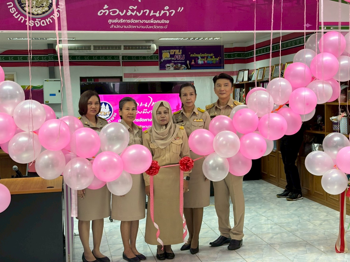 สำนักงานจัดหางานจังหวัดกระบี่ เดินหน้าขับเคลื่อน นโยบาย “คนไทย ต้องมีงานทำ” วันจันทร์ที่ 24 พฤศจิกายน 2568 เวลา 11.00 น. นางสาวอัญฒิกา ทองเปลว จัดหางานจังหวัดกระบี่ พร้อมหัวหน้าหน่วยงานสังกัดกระทรวงแรงงานและเจ้าหน้าที่ ร่วมพิธีเปิดศูนย์บริการจัดหางานเพื่อคนไทย ภายใต้แนวคิด “คนไทย ต้องมีงานทำ”ของรัฐมนตรีว่าการกระทรวงแรงงาน (นางสาวตรีนุช เทียนทอง) เพื่อขับเคลื่อนการให้บริการจัดหางานของกรมการจัดหางานให้คนไทยมีงานทำ มีอาชีพและมีรายได้ ณ สำนักงานจัดหางานจังหวัดกระบี่ อาคารศูนย์ราชการกระทรวงแรงงาน ชั้น 1 ตำบลไสไทย อำเภอเมืองกระบี่ จังหวัดกระบี่