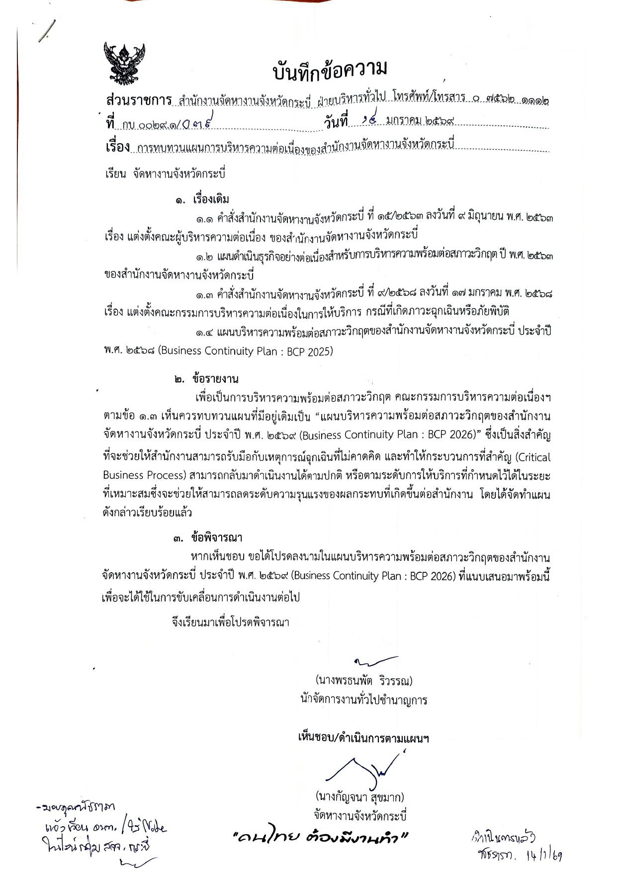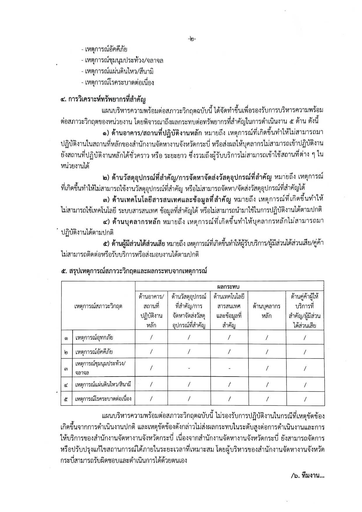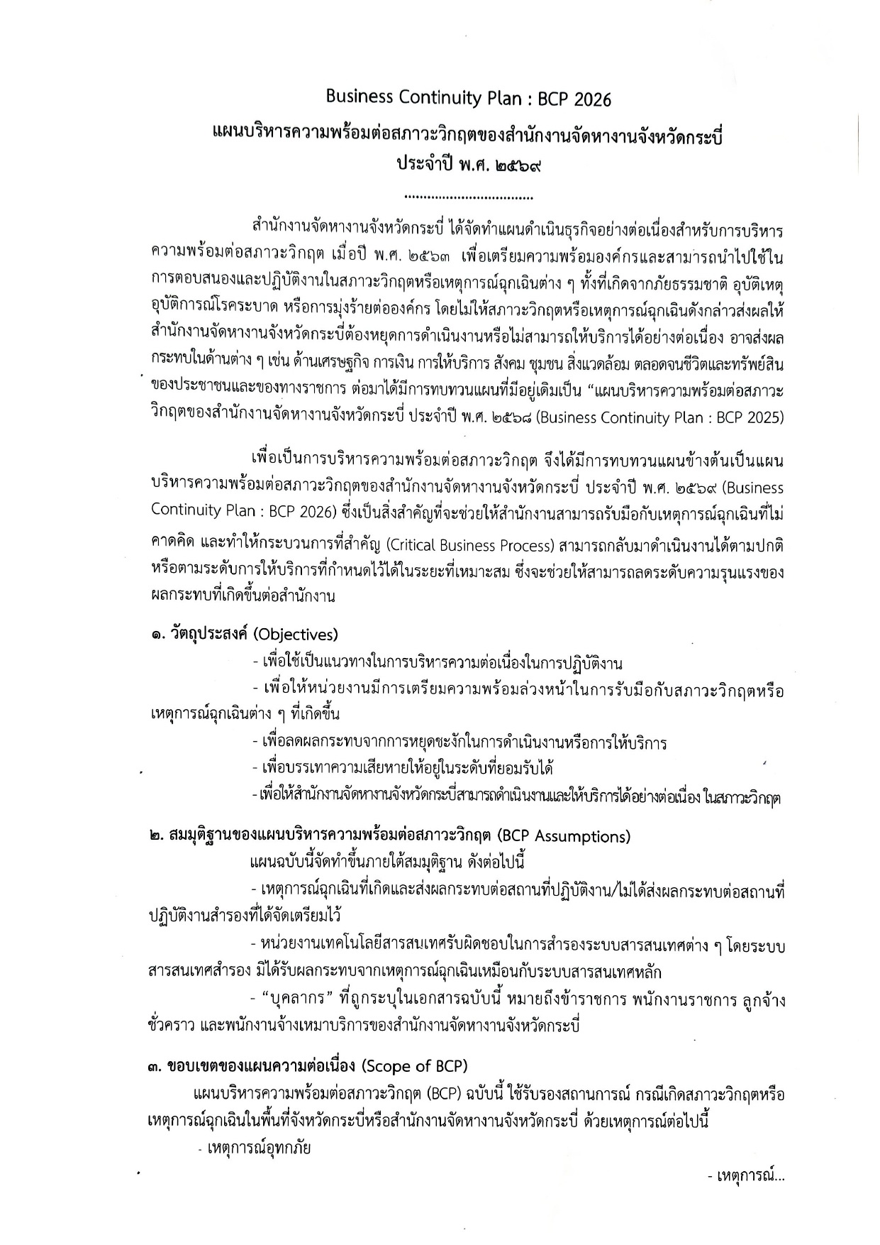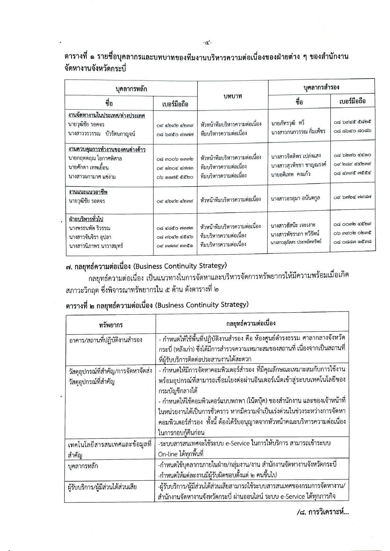 แผนการบริหารความต่อเนื่องของสำนักงานจัดหางานจังหวัดกระบี่