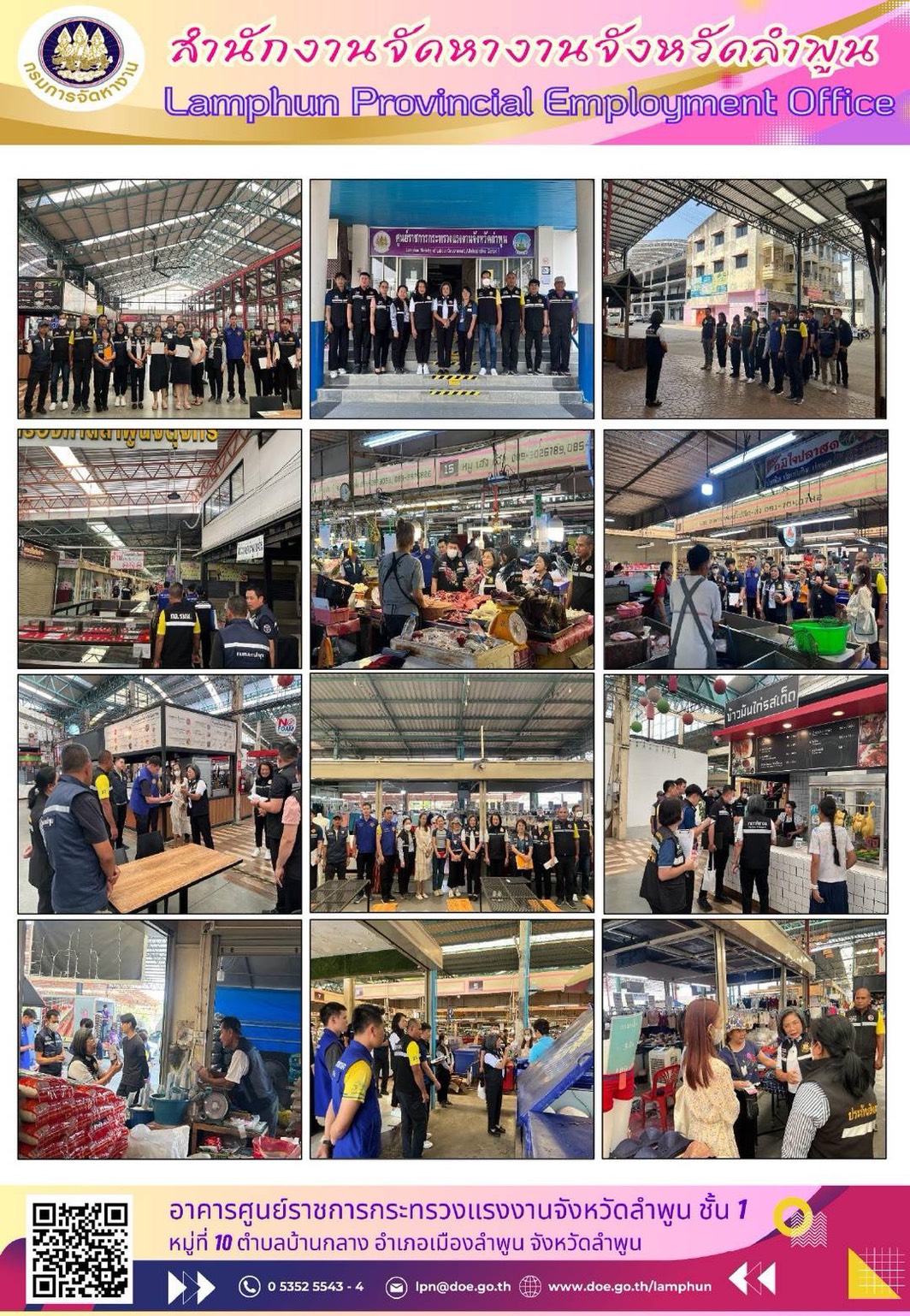 วันที่ 14 มีนาคม 2568 นางสาวพุทธชาติ อินทร์สวา จัดหางานจังหวัดลำพูน นำทีมคณะทำงานตรวจสอบการทำงานของคนต่างด้าว และนายจ้าง/สถานประกอบการ ประกอบด้วยหน่วยงานในสังกัดกระทรวงแรงงาน ที่ทำปกครองจังหวัดลำพูน ที่ทำปกครองอำเภอเมืองลำพูน ตำรวจภูธรจังหวัดลำพูน และกองอำนวยการรักษาความมั่นคงภายในจังหวัดลำพูน (กอ.รมน.จังหวัดลำพูน) ลงพื้นที่ ณ ตลาดลำพูนจตุจักร ตำป่าสัก อำเภอเมืองลำพูน