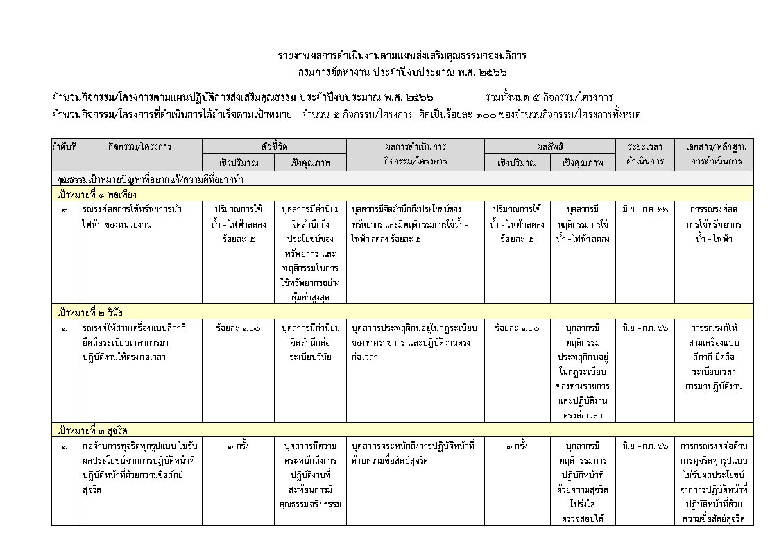 รายงานผลการดำเนินงานตามแผนส่งเสริมคุณธรรมกองนิติการ กรมการจัดหางาน ประจำปีงบประมาณ พ.ศ. ๒๕๖๖