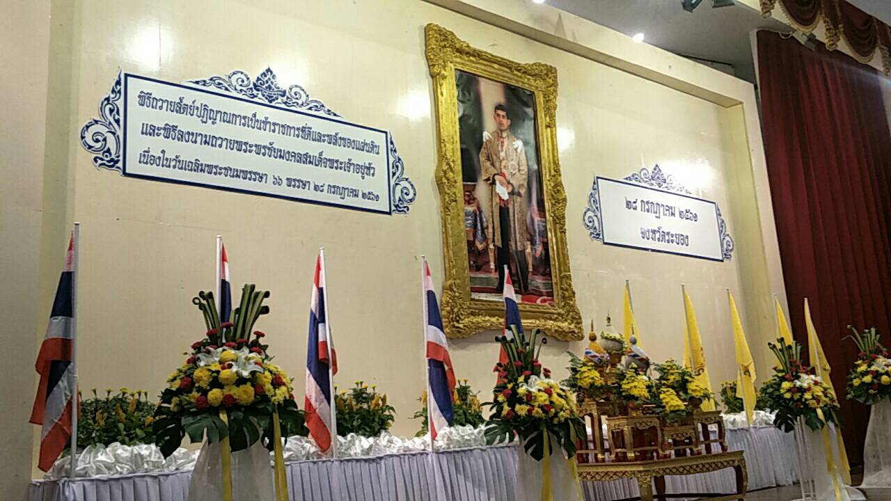 วันที่ 28 กรกฎาคม 2561 เวลา 09.00 น. นายสุรศักดิ์ เจริญศิริโชติ ผู้ว่าราชการจังหวัดระยอง เป็นประธานพิธีเปิดกรวยกระทงดอกไม้ถวายราชสักการะ หน้าพระฉายาลักษณ์สมเด็จพระเจ้าอยู่หัว มหาวชิราลงกรณ บดินทรเทพยวรางกูร ลงนามถวายพระพร เนื่องในวันเฉลิมพระชนมพรรษา สมเด็จพระเจ้าอยู่หัว ๖๖ พรรษา 28 กรกฎาคม 2561