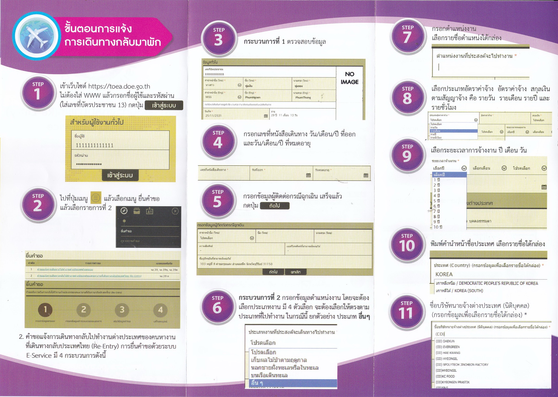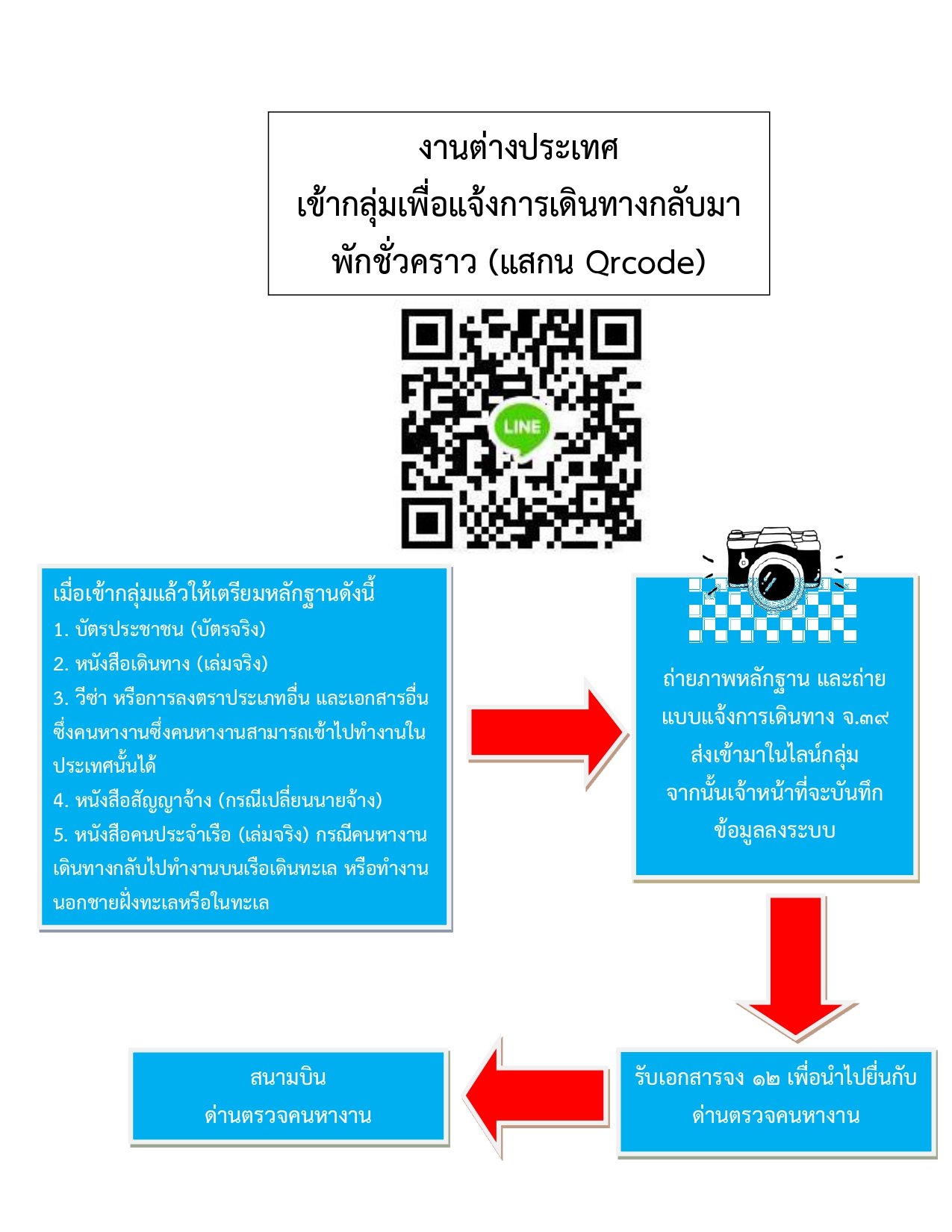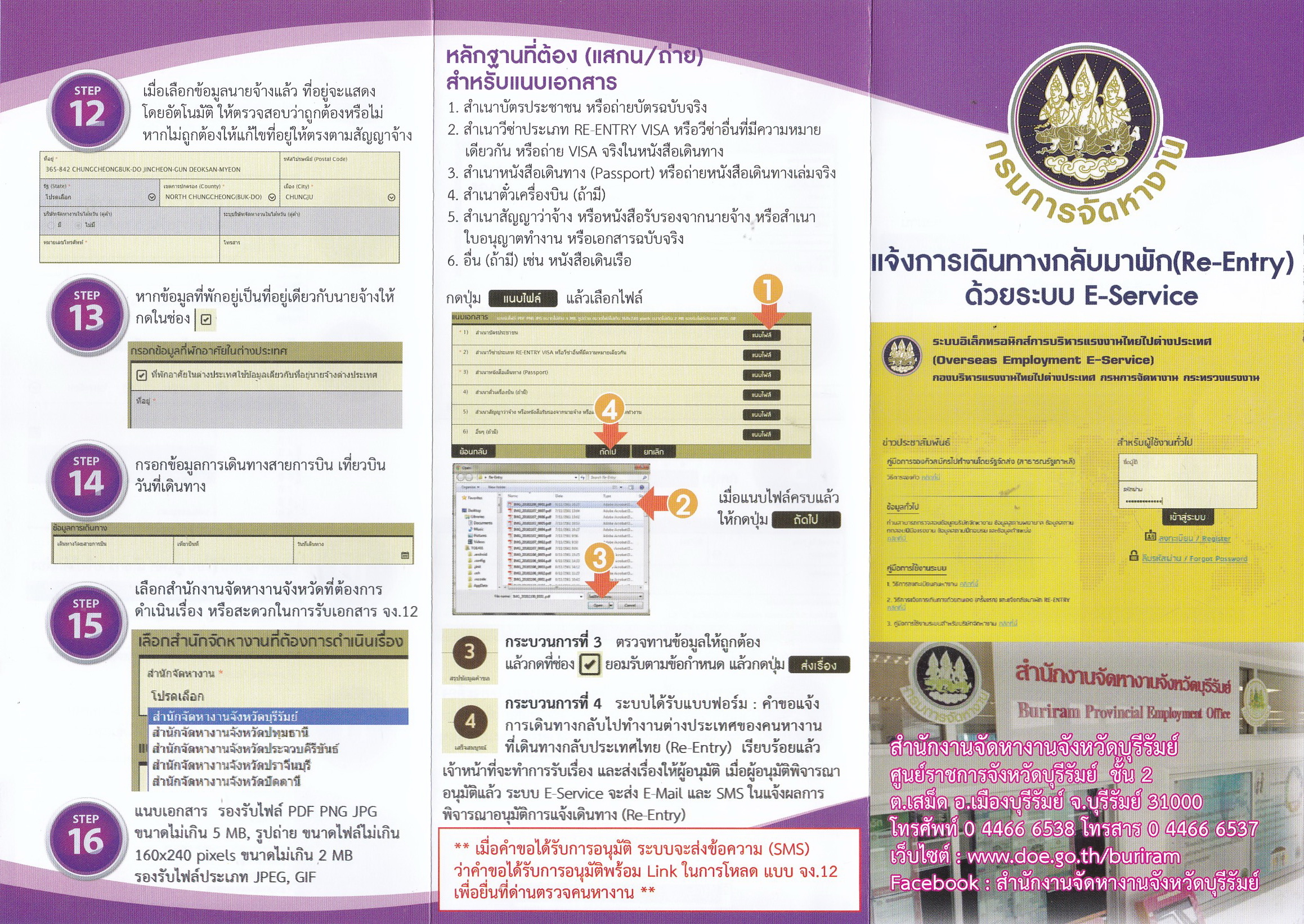 รายงานตัวกลับมาพัก/แจ้งการเดินทางไปทำงานต่างประเทศ ให้ดำเนินการผ่านระบบ E-service เพื่ออำนวยความสะดวกต่อผู้มาติดต่อฝ่ายจัดหางานต่างประเทศ