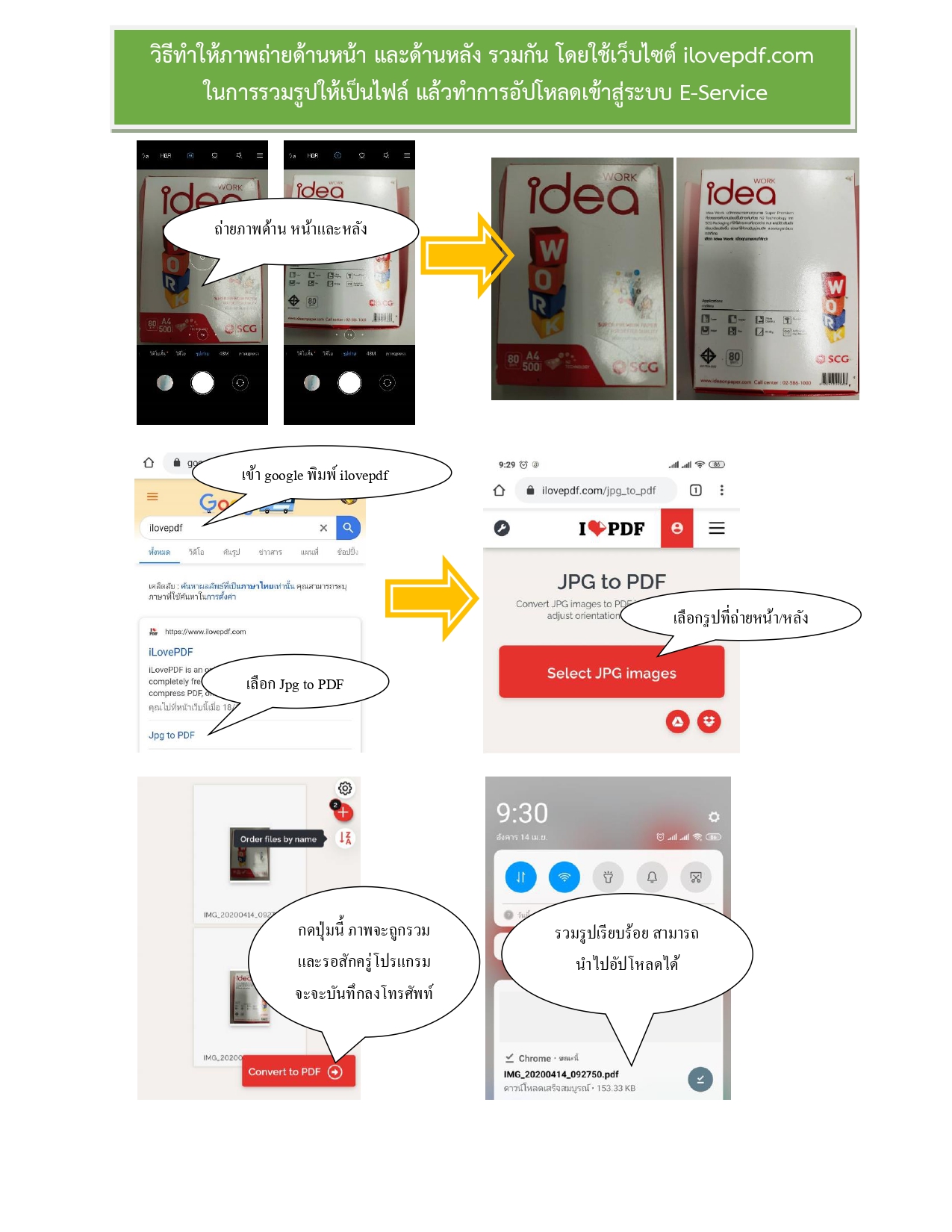และด้านหลัง รวมกัน โดยใช้เว็บไซต์ ilovepdf.com