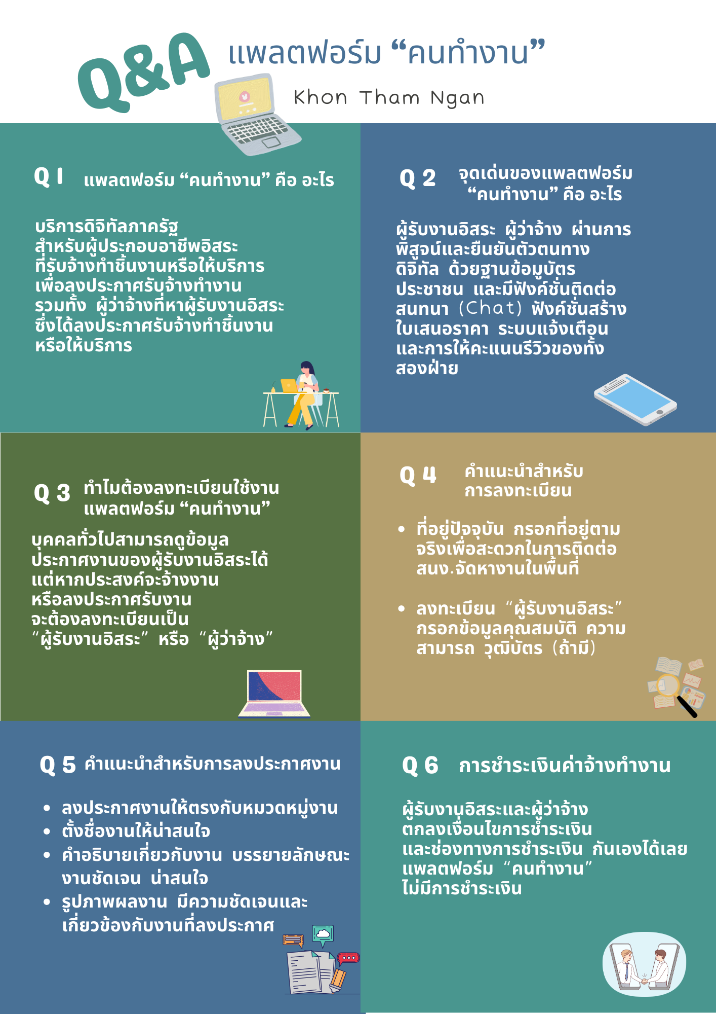 5) แพลตฟอร์ม "คนทำงาน" ให้บริการฟรี ไม่มีค่าใช้จ่ายใด ๆ ทั้งสิ้น