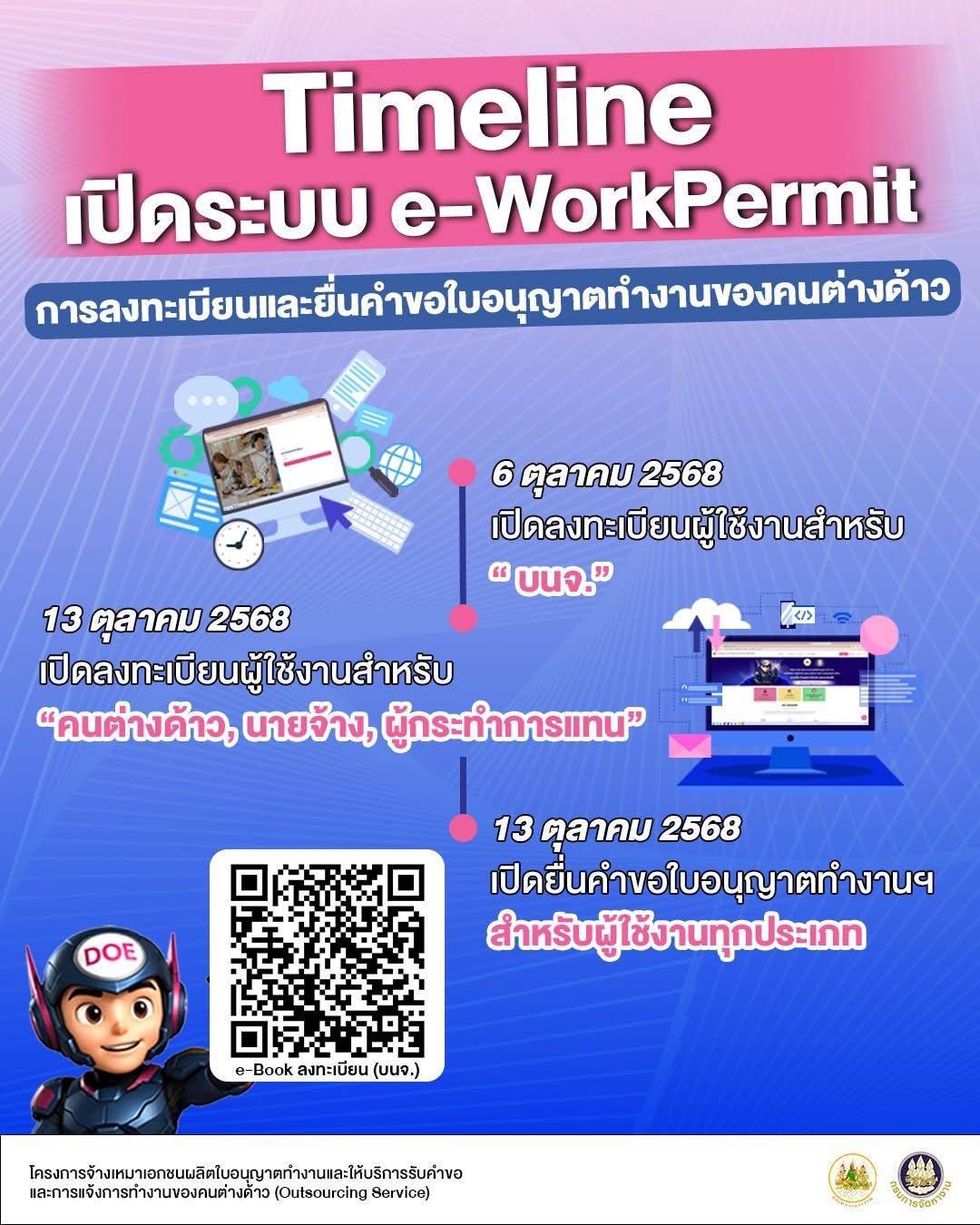 สรุปไทม์ไลน์เปิดระบบ e-WorkPermit การลงทะเบียนและยื่นคำขอใบอนุญาตทำงานของคนต่างด้าว