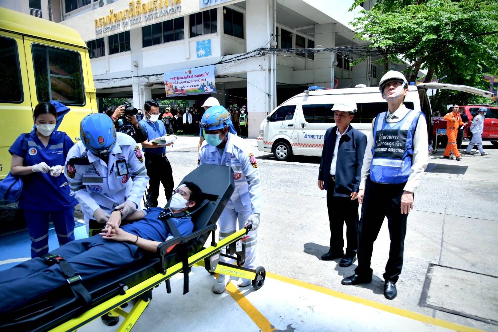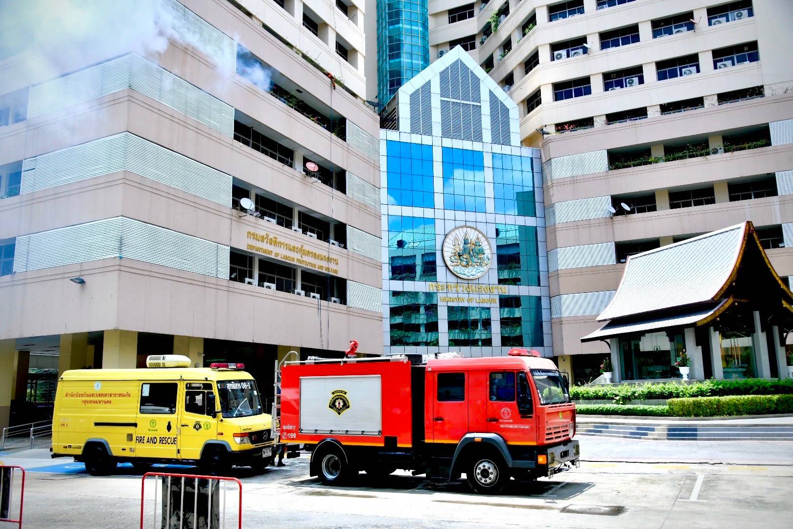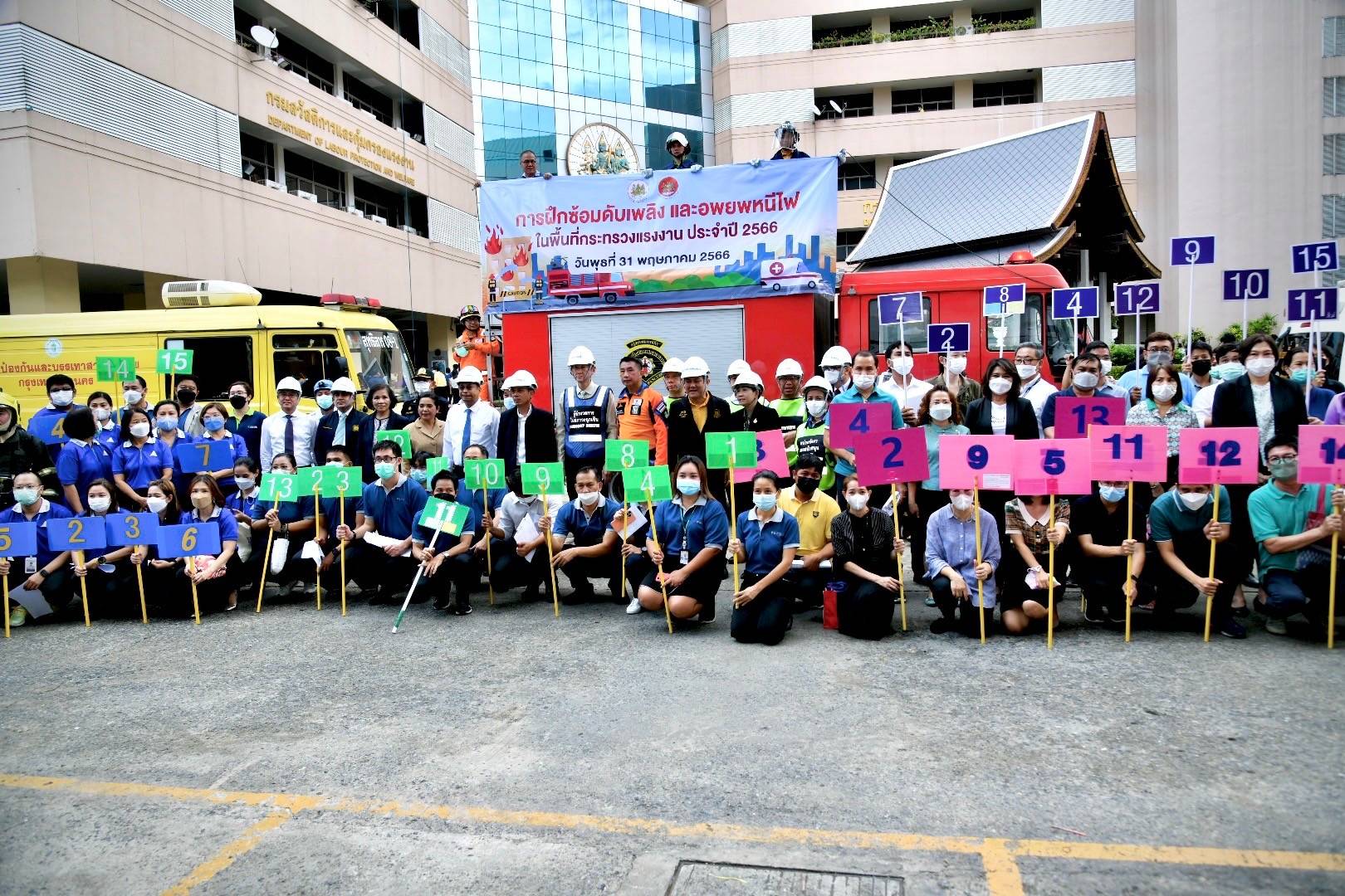 กรมการจัดหางาน ร่วมซ้อมดับเพลิงและอพยพหนีไฟโดยจำลองสถานการณ์จริง ประจำปี 2566