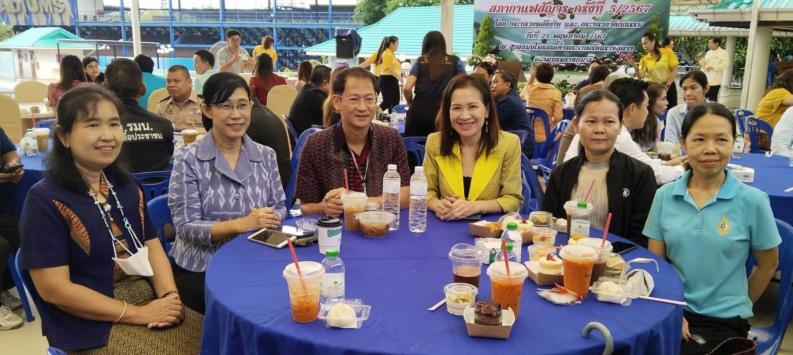 วันพฤหัสบดีที่ 23 พฤษภาคม 2567 กองบริหารข้อมูลตลาดแรงงาน โดยศูนย์บริหารข้อมูลตลาดแรงงานภาคตะวันออก นายณัฐพล รักชาติ หัวหน้าศูนย์บริหารข้อมูลตลาดแรงงานภาคตะวันออก มอบหมายให้นางสาวบุษบา ไทยพิทักษ์ หัวหน้างานบริหารทั่วไป และนางอริสรา สานุสุข เจ้าพนักงานแรงงานชำนาญงาน เข้าร่วมกิจกรรมสภากาแฟสัญจร ครั้งที่ 5/2567 ประจำเดือนพฤษภาคม 2567 เพื่อเป็นการพบปะ สนทนา แลกเปลี่ยนความคิดเห็น รับฟังปัญหา และข้อเสนอแนะจากทุกภาคส่วน เพื่อประโยชน์ในการพัฒนาจังหวัดระยอง จัดโดยส่วนราชการในสังกัดกระทรวงพลังงานและกระทรวงวัฒนธรรม โดยมี นายไตรภพ วงศ์ไตรรัตน์ ผู้ว่าราชการจังหวัดระยอง เป็นประธาน ณ ลานลีลาวดี สวนสมุนไพรสมเด็จพระเทพรัตนราชสุดาฯ สยามบรมราชกุมารี อำเภอนิคมพัฒนา จังหวัดระยอง