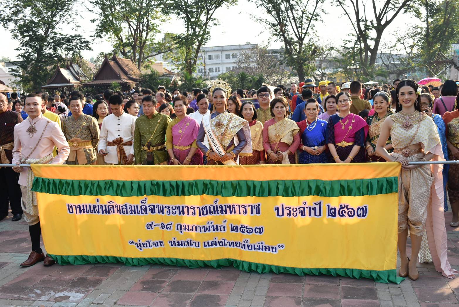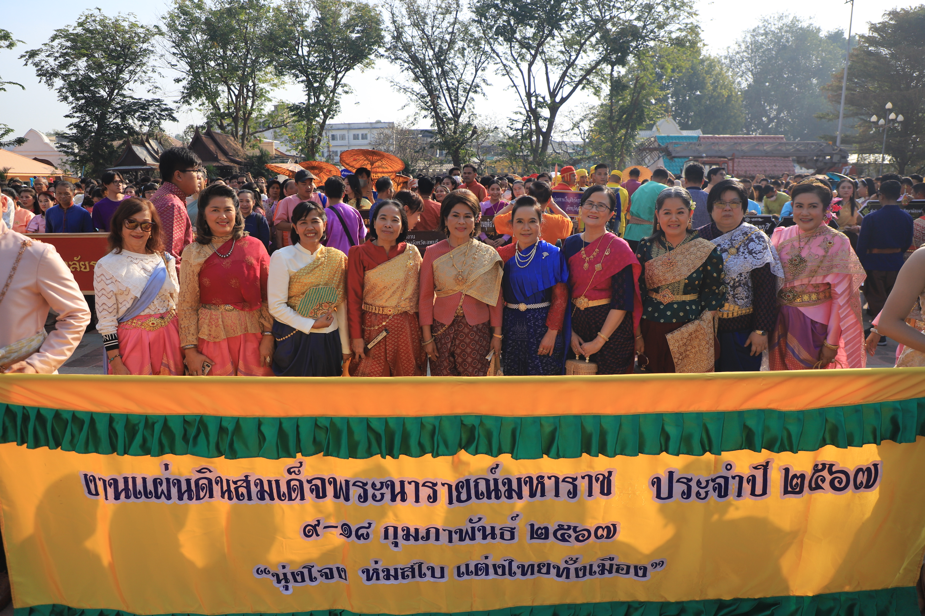 วันที่ 19 มกราคม 2567 นางสาวอนงค์นุช มีศิริ จัดหางานจังหวัดลพบุรี พร้อมด้วยข้าราชการและเจ้าหน้าที่สำนักงานจัดหางานจัดหางานจังหวัดลพบุรี ร่วมกิจกรรมเดินรณรงค์แต่งไทยทั้งเมือง “นุ่งโจง ห่มสไบ แต่งไทยทั้งเมือง” งานแผ่นดินสมเด็จพระนารายณ์มหาราช ครั้งที่ 36 ประจำปี 2567 ณ บริเวณสวนราชานุสรณ์ อำเภอเมืองลพบุรี จังหวัดลพบุรี โดยมี นายปรัชญา เปปะตัง รองผู้ว่าราชการจังหวัดลพบุรี เป็นประธานเปิดงานเดินรณรงค์แต่งไทยทั้งเมือง ซึ่งมีหัวหน้าส่วนราชการพลเรือน ศาล ทหาร ตำรวจ สถานศึกษา องค์กรปกครองส่วนท้องถิ่น ภาคเอกชนและประชาชน ร่วมกิจกรรมกว่า 3,500 คน โดยขบวนเคลื่อนออกจากสวนราชานุสรณ์ เลี้ยวขวาหน้าพระนารายณ์ราชนิเวศน์ เข้าถนนราชดำเนินตรงมายังปรางค์แขก เลี้ยวขวาเข้าสู่ถนนวิชาเยนทร์ ตรงมายังปรางค์สามยอด ผ่านศาลพระกาฬ มาสิ้นสุดขบวนที่โรงเรียนพิบูลวิทยาลัย