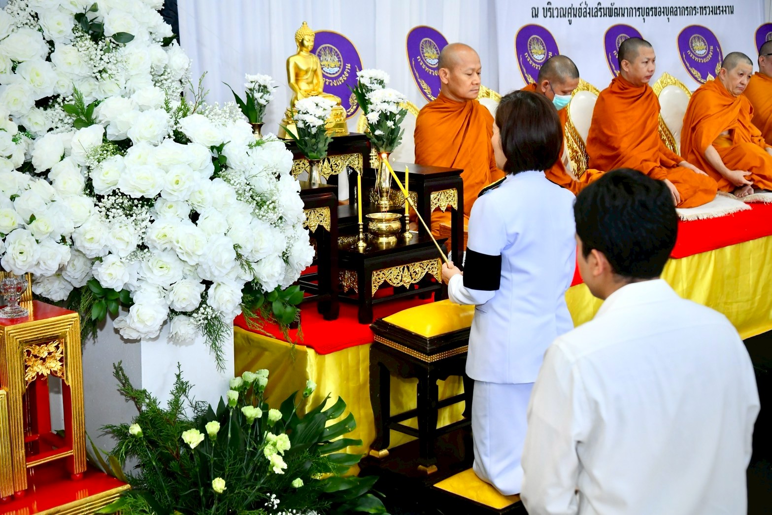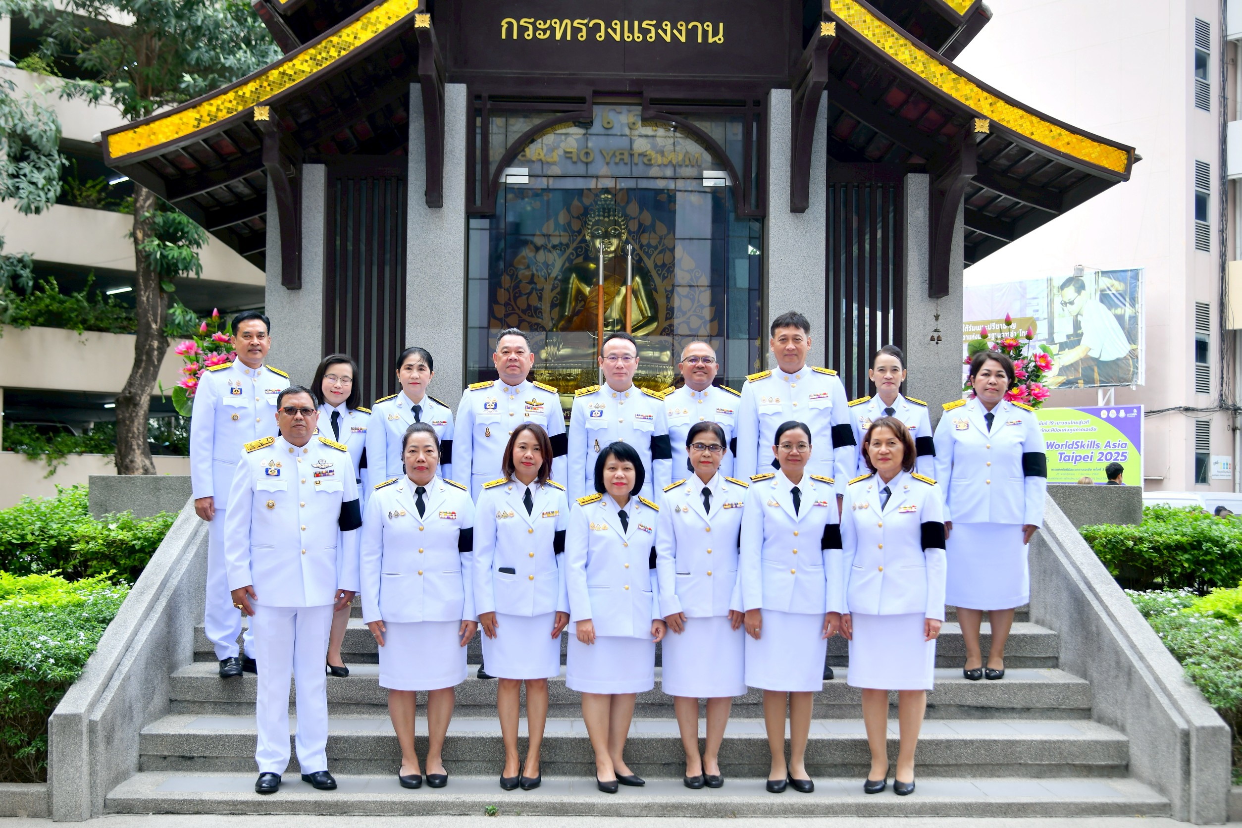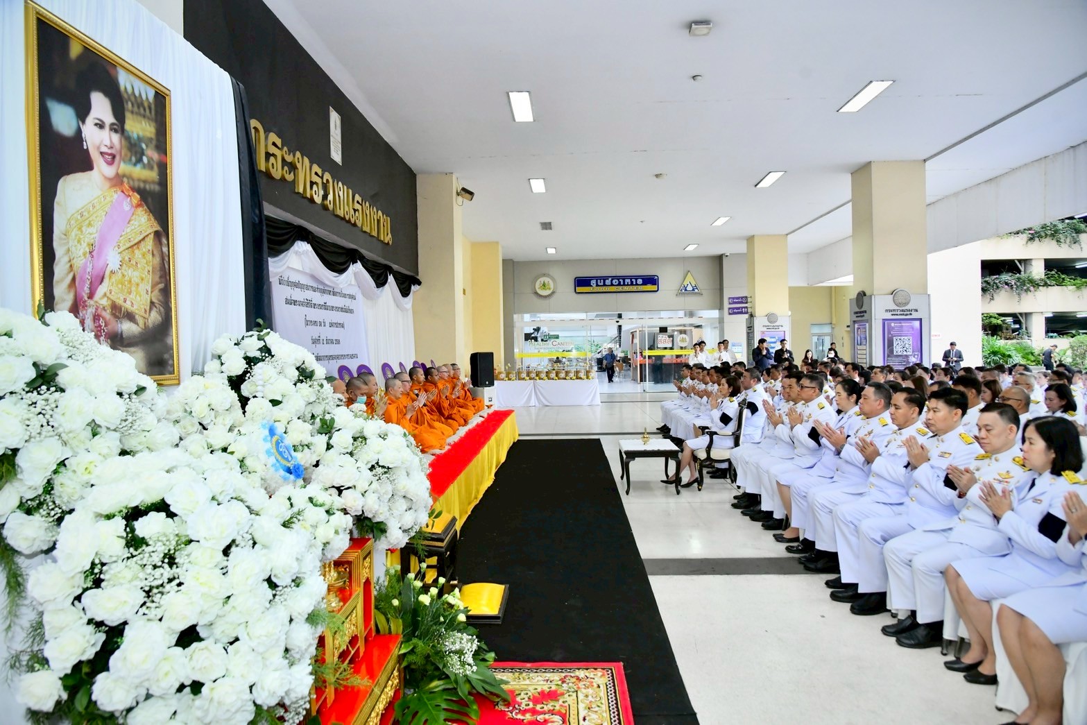 ผู้บริหารกรมการจัดหางาน ร่วมพิธีบำเพ็ญกุศล และทำบุญตักบาตร เพื่อถวายเป็นพระราชกุศลแด่สมเด็จพระนางเจ้าสิริกิติ์ พระบรมราชินีนาถ พระบรมราชชนนีพันปีหลวง ในวาระครบ 50 วัน (ปัญญาสมวาร)