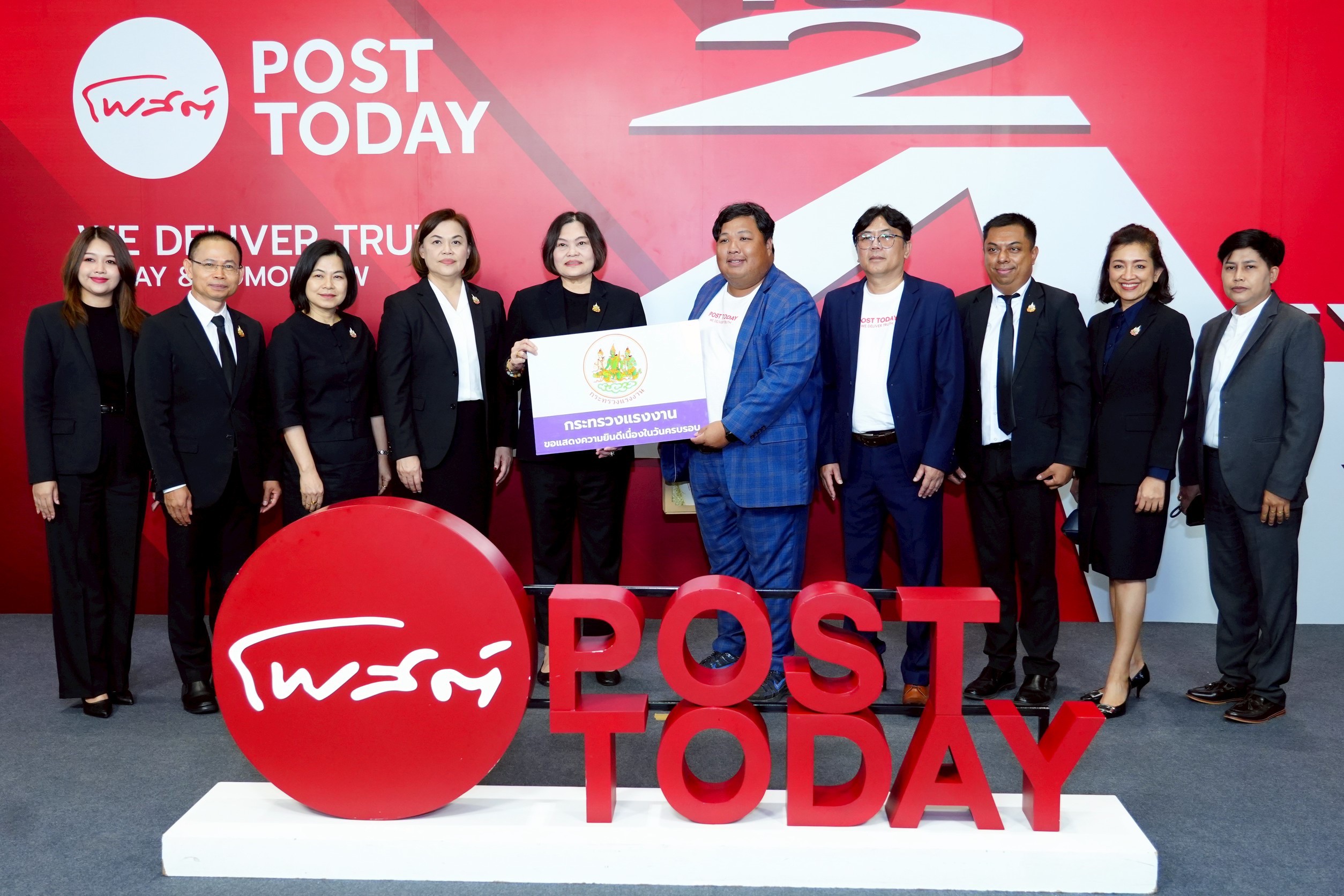 วันที่ 9 กุมภาพันธ์ 2569 เวลา 13.00 น. นายสมชาย มรกตศรีวรรณ อธิบดีกรมการจัดหางาน มอบหมายให้นางวีรยา รัตนนิตย์ ผู้ตรวจราชการกรม กรมการจัดหางาน ร่วมแสดงความยินดีเนื่องในโอกาสวันคล้ายวันก่อตั้งครบรอบ 23 ปี หนังสือพิมพ์โพสต์ทูเดย์ ก้าวสู่ปีที่ 24 โดยมีนางสาวบุณยวีร์ ไขว้พันธุ์ หัวหน้าผู้ตรวจราชการกระทรวงแรงงาน นำคณะผู้บริหารกระทรวงแรงงานร่วมแสดง ณ อาคารเนชั่น เขตบางนา กรุงเทพฯ