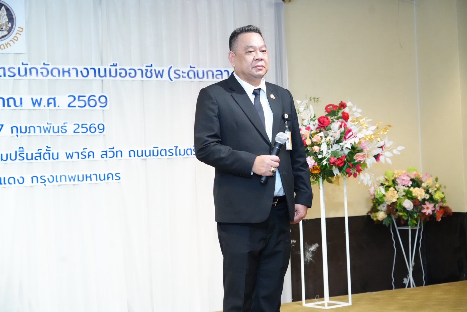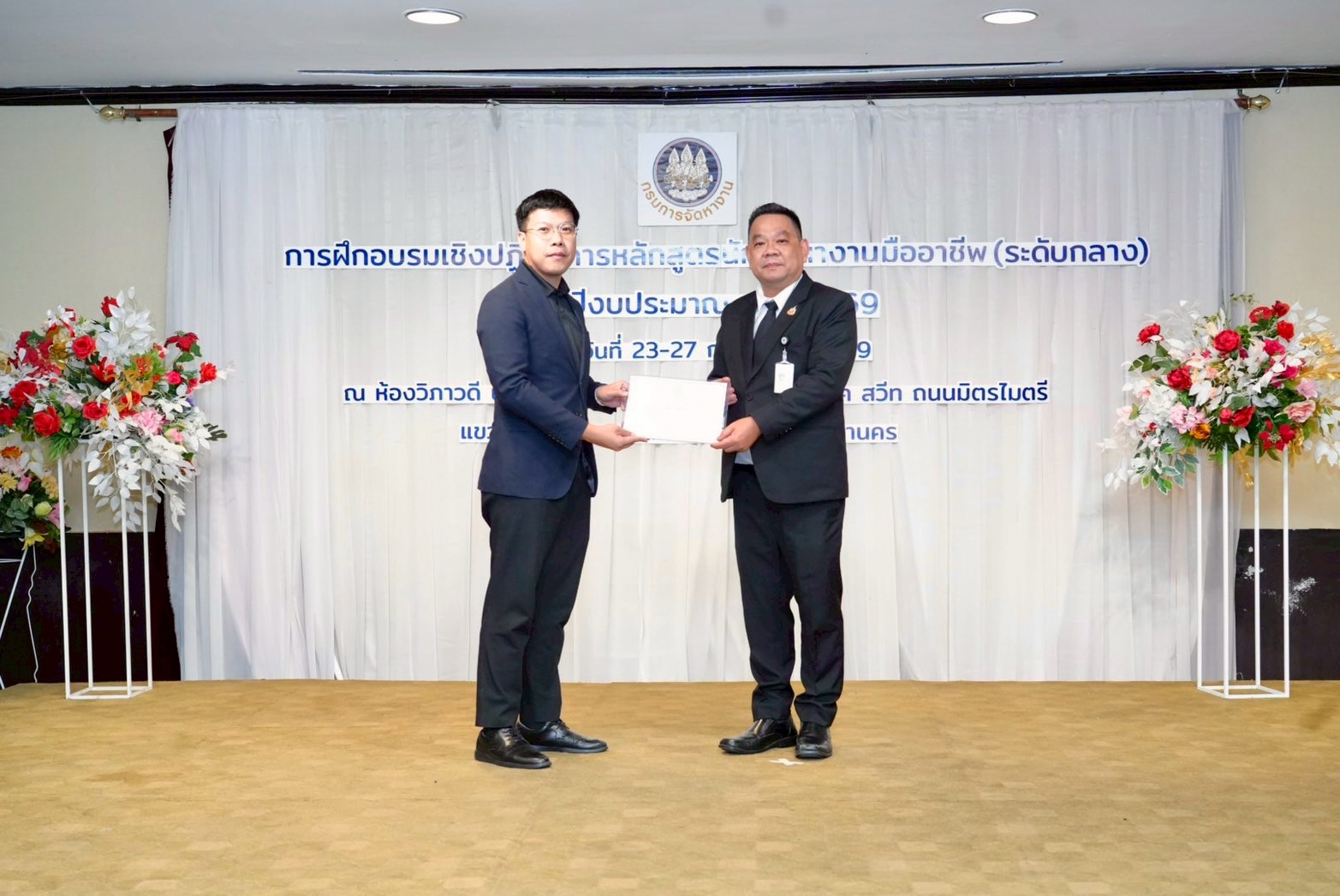 วันที่ 27 กุมภาพันธ์ 2569 เวลา 13.30 น. นายสมชาย มรกตศรีวรรณ อธิบดีกรมการจัดหางาน มอบหมายให้นายมงคล สงคราม รองอธิบดีกรมการจัดหางาน เป็นประธานในพิธีมอบวุฒิบัตร และพิธีปิดการจัดการฝึกอบรมเชิงปฏิบัติการหลักสูตรนักจัดหางานมืออาชีพ (ระดับกลาง) ประจำปีงบประมาณ พ.ศ. 2569 โดยมีผู้บริหาร เจ้าหน้าที่ที่เกี่ยวข้องร่วมพิธีปิดฯ ณ ห้องวิภาวดี บอลรูม ชั้น 4 โรงแรมปริ๊นส์ตั้น พาร์ค สวีท เขตดินแดง กรุงเทพฯ