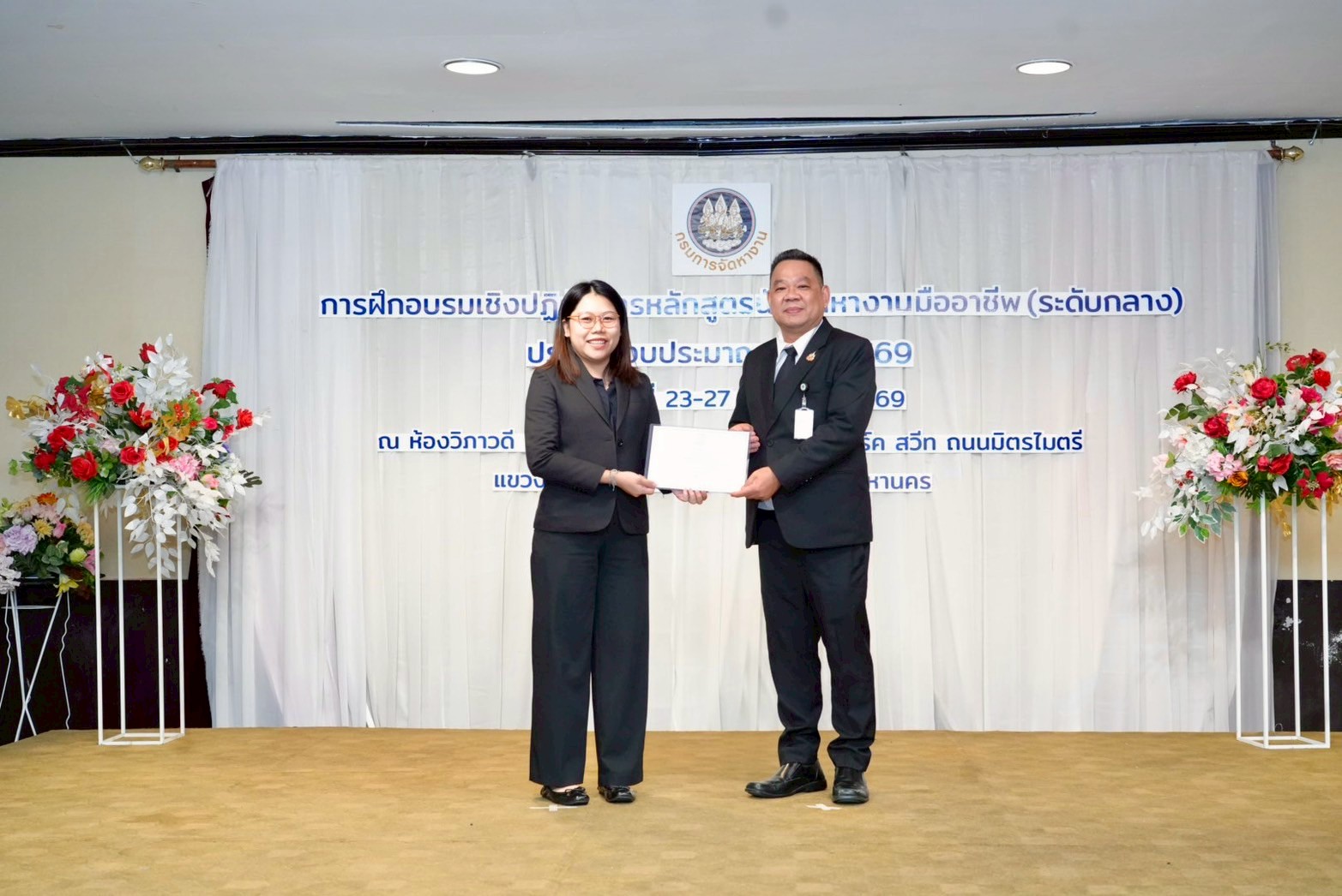 รองอธิบดีกรมการจัดหางาน มอบวุฒิบัตรและปิดการจัดการฝึกอบรมเชิงปฏิบัติการหลักสูตรนักจัดหางานมืออาชีพ (ระดับกลาง) ประจำปีงบประมาณ พ.ศ. 2569