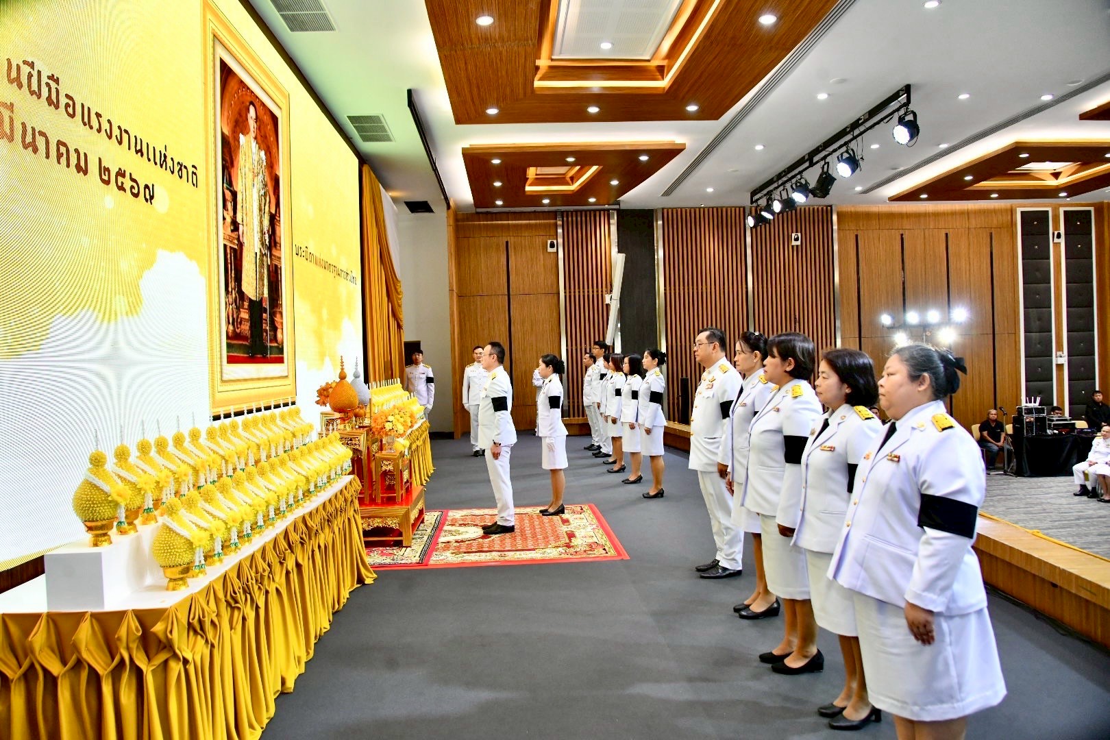 ผู้บริหารกรมการจัดหางาน ร่วมพิธีวางพานพุ่มถวายราชสักการะแด่พระบาทสมเด็จพระบรมชนกาธิเบศร มหาภูมิพลอดุลยเดชมหาราช บรมนาถบพิตร เนื่องในวันมาตรฐานฝีมือแรงงานแห่งชาติ ประจำปี 2569