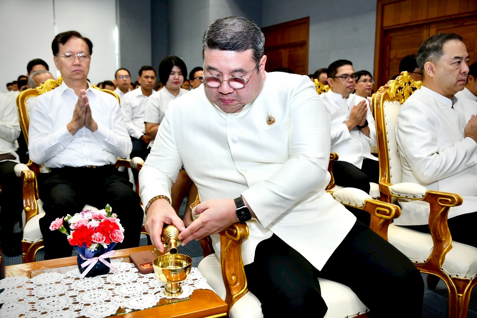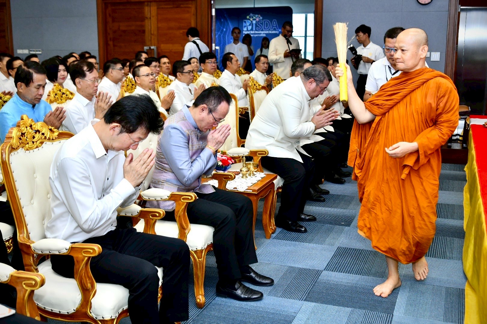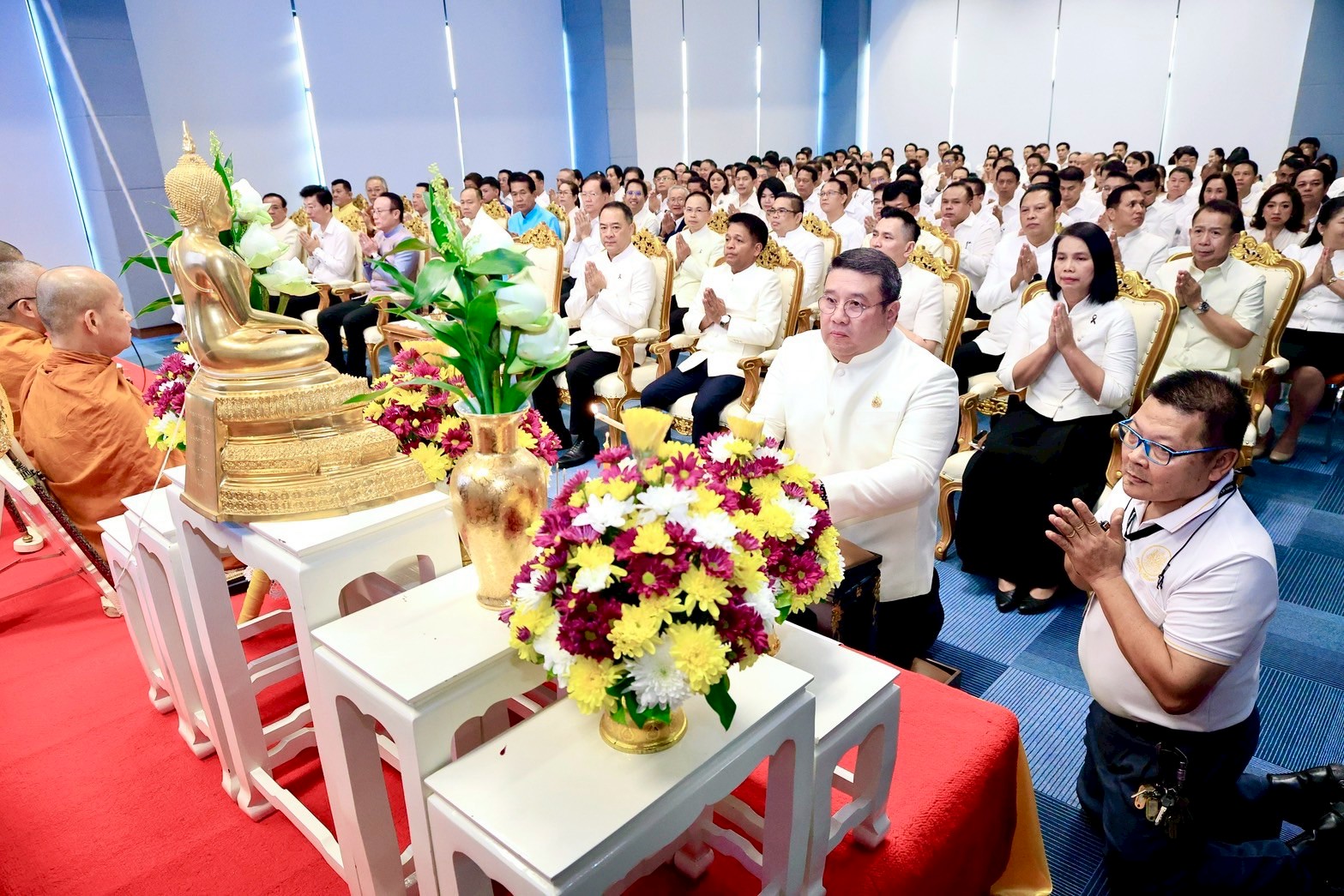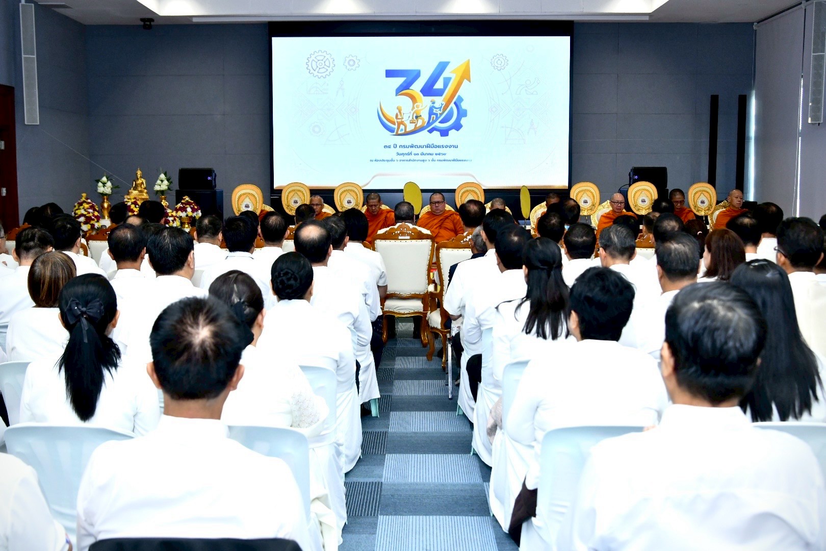 วันที่ 13 มีนาคม 2569 เวลา 07.30 น. นายสมชาย มรกตศรีวรรณ อธิบดีกรมการจัดหางาน ร่วมพิธีทำบุญเนื่องในวันคล้ายวันสถาปนากรมพัฒนาฝีมือแรงงาน ประจำปี 2569 (ครบรอบ 34 ปี) โดยมีพันตำรวจโท วรรณพงษ์ คชรักษ์ ปลัดกระทรวงแรงงาน เป็นประธาน พร้อมด้วยผู้บริหาร และเจ้าหน้าที่ร่วมพิธี ณ ห้องประชุม ชั้น 6 อาคาร DSD กรมพัฒนาฝีมือแรงงาน
