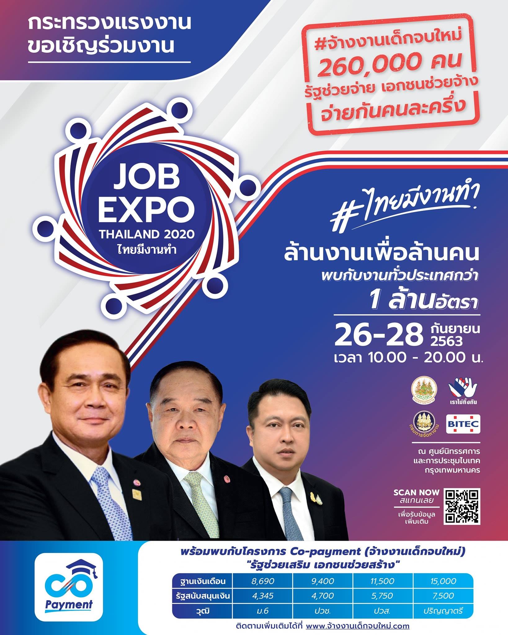 ข้อมูลของกรมการจัดหางาน พบว่า ตำแหน่งงานว่างรอการบรรจุ ในปีงบประมาณ พ.ศ. 2564 สำหรับงาน JOB EXPO THAILAND 2020 จะมีจำนวนทั้งสิ้น 1,000,000 อัตรา แบ่งออกเป็น