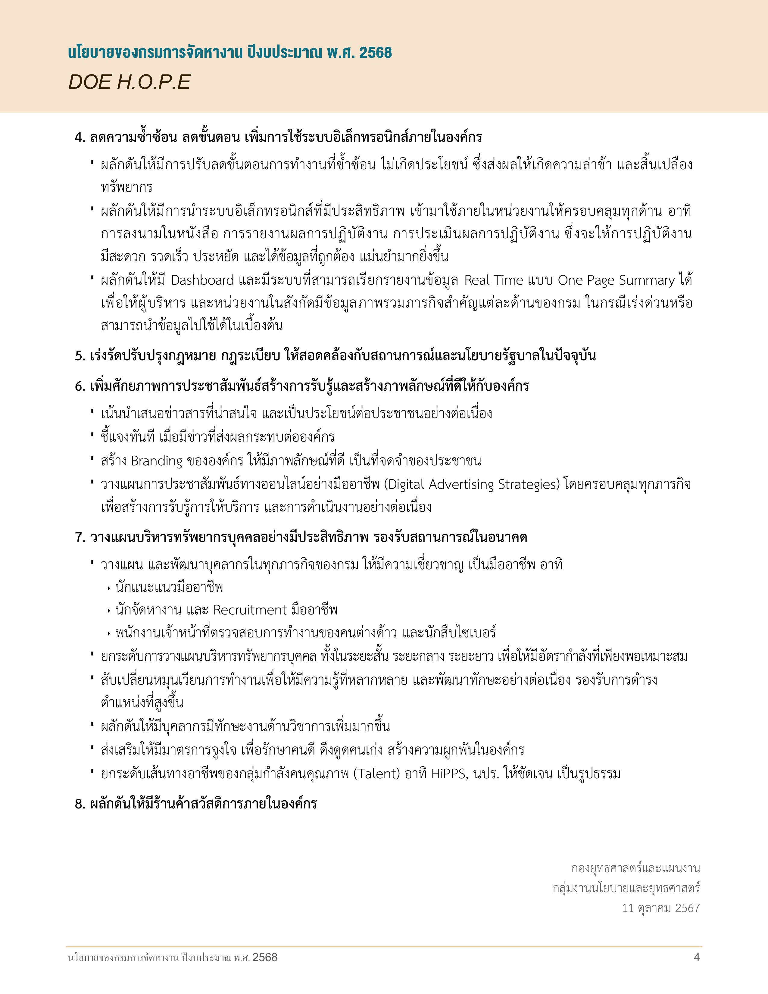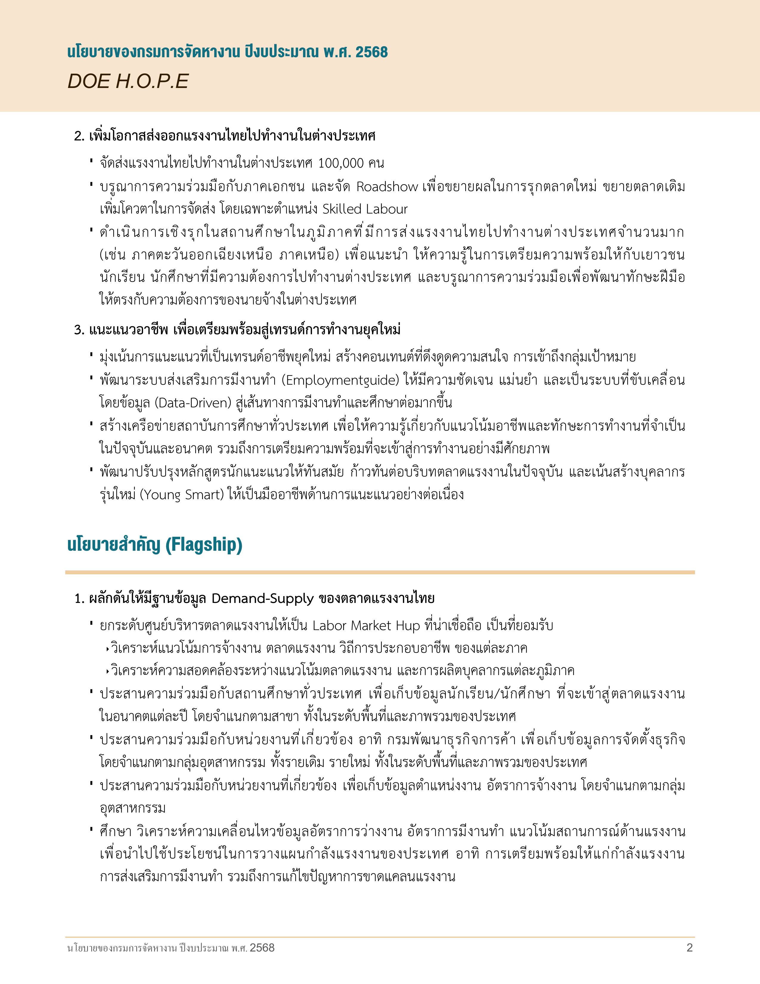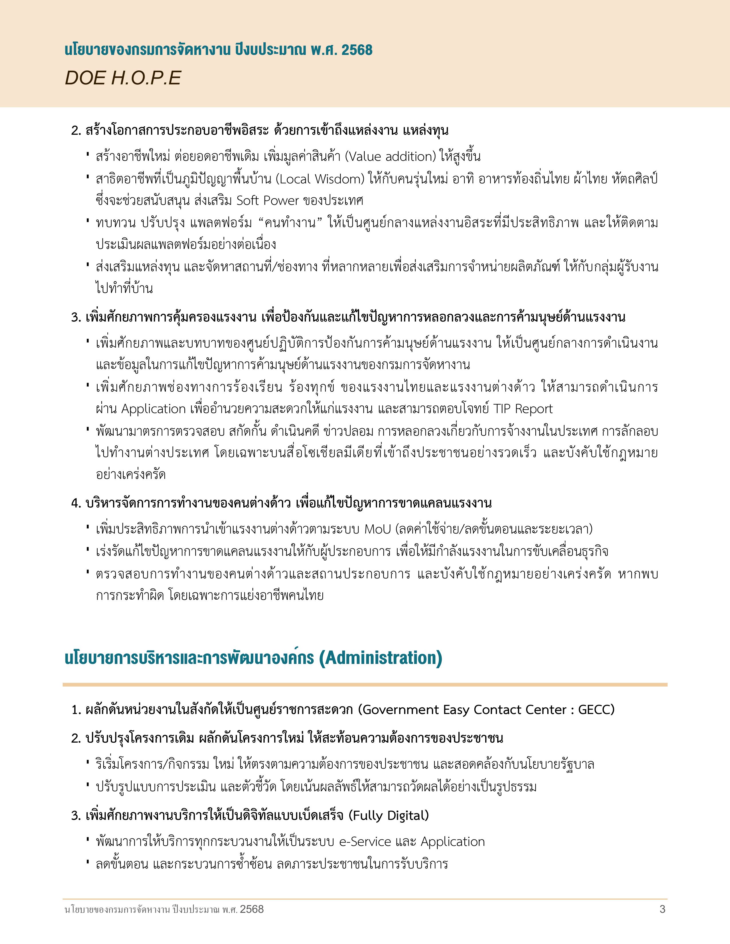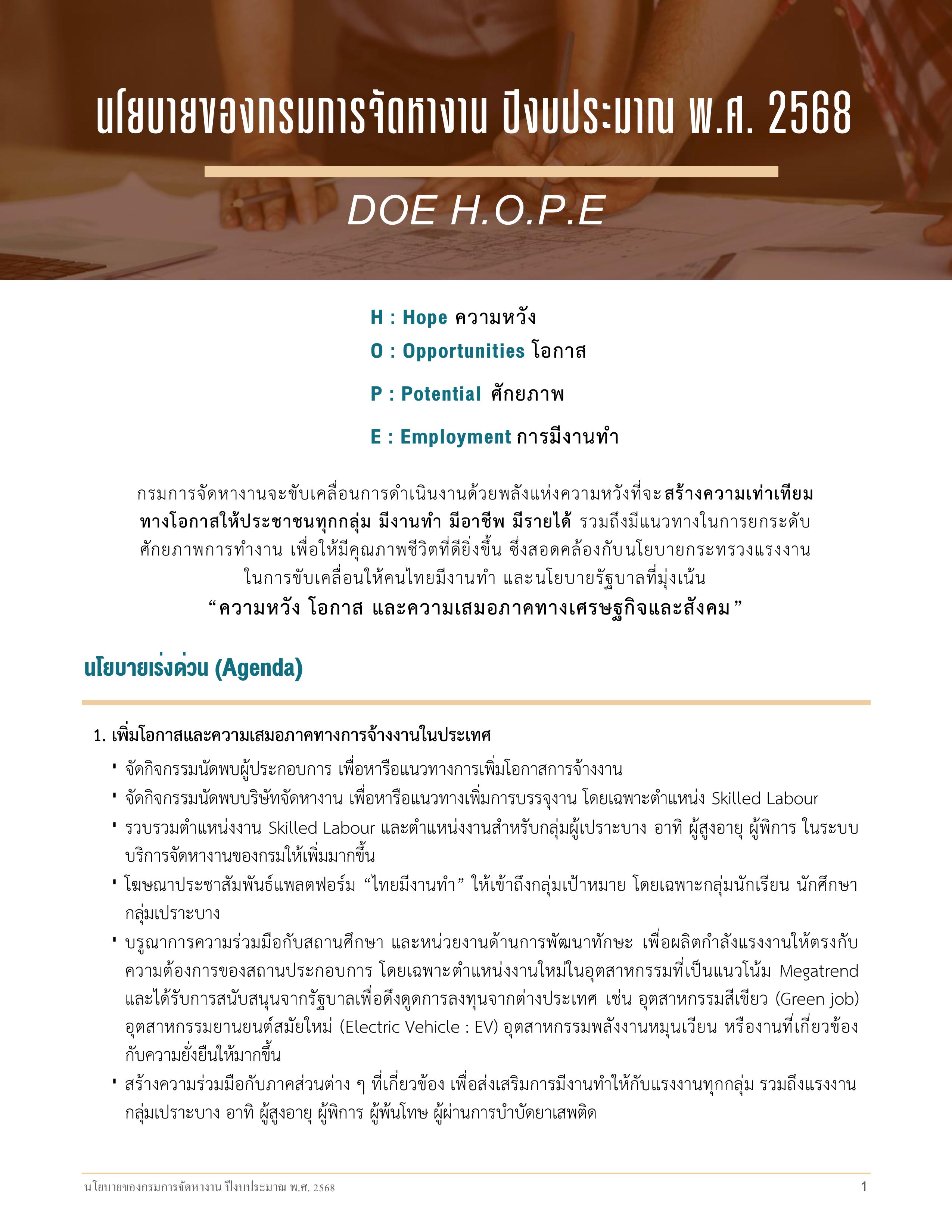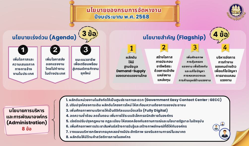 นโยบายกรมการจัดหางาน ปีงบประมาณ พ.ศ. 2568