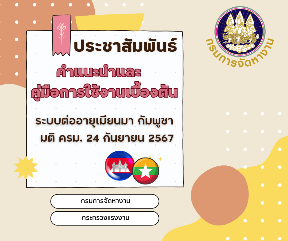 วีดีโอแนะนำการขอใบอนุญาตทำงาน ณ.สจจ / สจกรายชื่อสถานพยาบาลเอกชนที่ผ่านการพิจารณาและดำเนินการเชื่อมข้อมูลกับระบบกรมการจัดหางาน ตามมติคณะรัฐมนตรี 24 กันยายน 2567